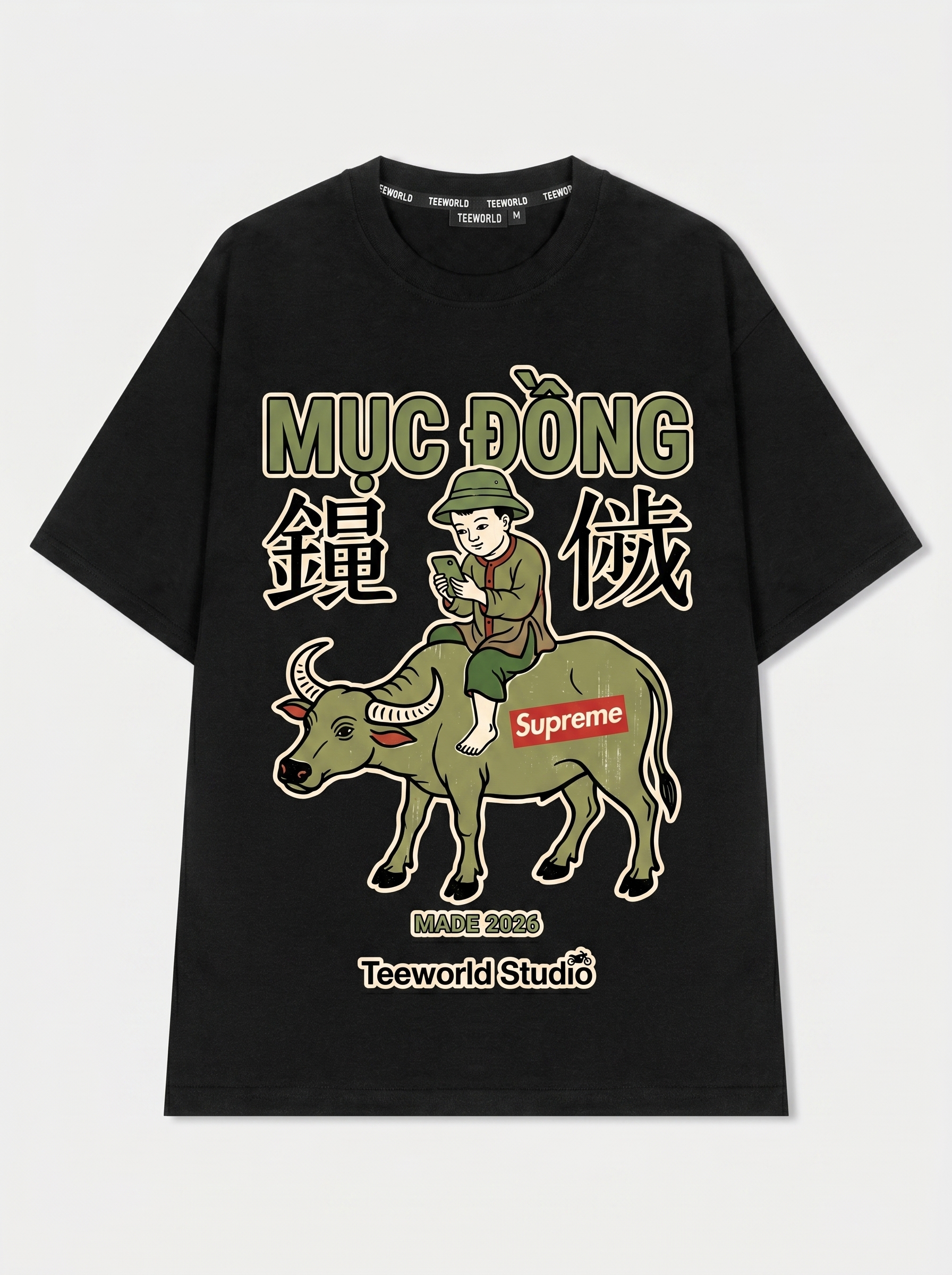 Trâu Modern - Thiết kế độc quyền từ Teeworld. Chất liệu: Cotton Premium 250gsm, form oversize thoải mái. In ấn: Công nghệ in sắc nét, bền màu sau nhiều lần giặt. Phong cách: Streetwear hiện đại, dễ phối đồ.