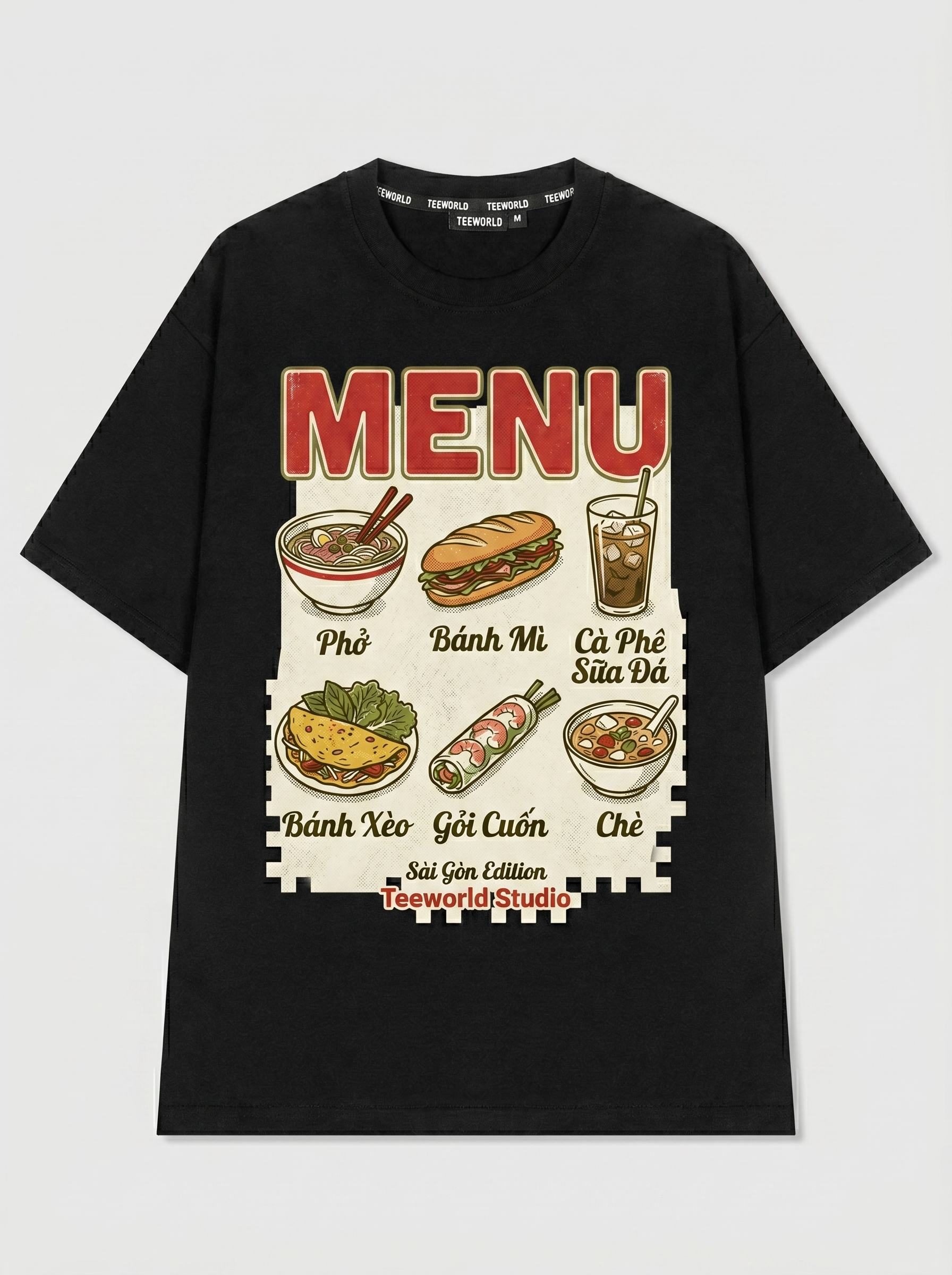 Ẩm Thực Đường Phố - Thiết kế độc quyền từ Teeworld. Chất liệu: Cotton Premium 250gsm, form oversize thoải mái. In ấn: Công nghệ in sắc nét, bền màu sau nhiều lần giặt. Phong cách: Streetwear hiện đại, dễ phối đồ.