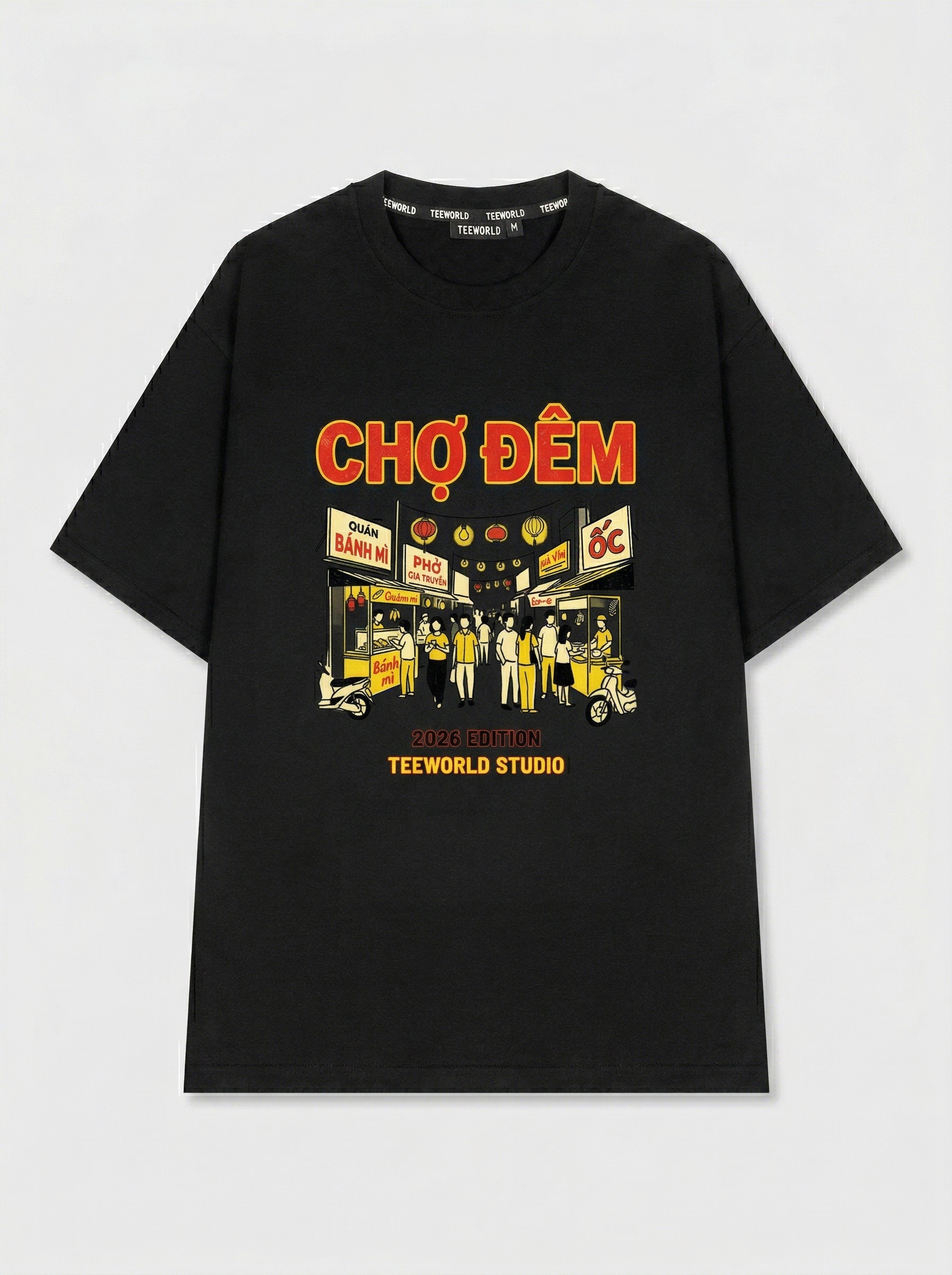 Ăn Đêm - Thiết kế độc quyền từ Teeworld. Chất liệu: Cotton Premium 250gsm, form oversize thoải mái. In ấn: Công nghệ in sắc nét, bền màu sau nhiều lần giặt. Phong cách: Streetwear hiện đại, dễ phối đồ.