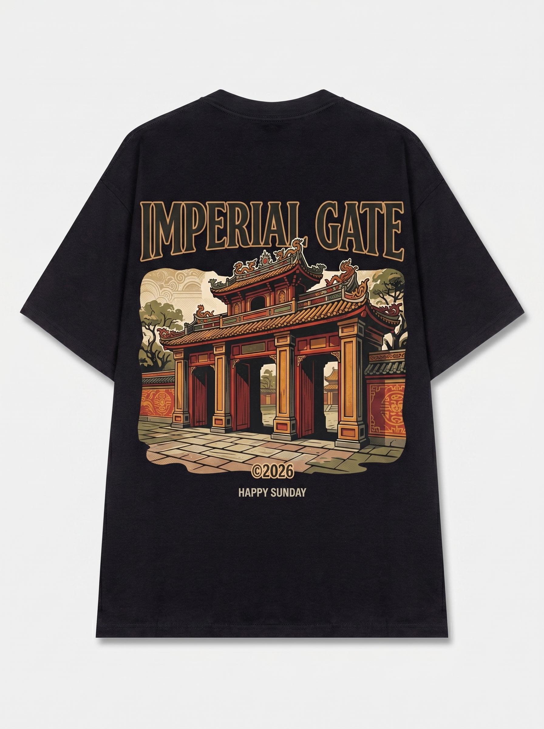 Ancient Entry - Thiết kế độc quyền từ Happy Sunday. Chất liệu: Cotton Premium 250gsm, form oversize thoải mái. In ấn: Công nghệ in sắc nét, bền màu sau nhiều lần giặt. Phong cách: Đồ họa nghệ thuật, nổi bật.