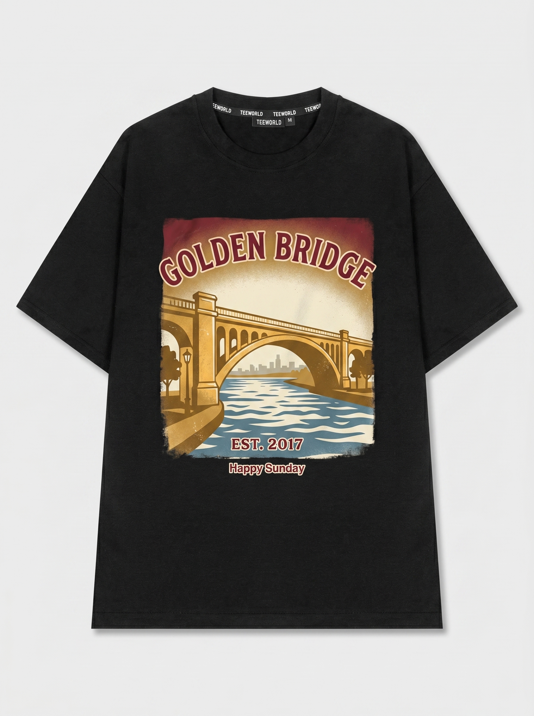 Archway View - Thiết kế độc quyền từ Happy Sunday. Chất liệu: Cotton Premium 250gsm, form oversize thoải mái. In ấn: Công nghệ in sắc nét, bền màu sau nhiều lần giặt. Phong cách: Đồ họa nghệ thuật, nổi bật.