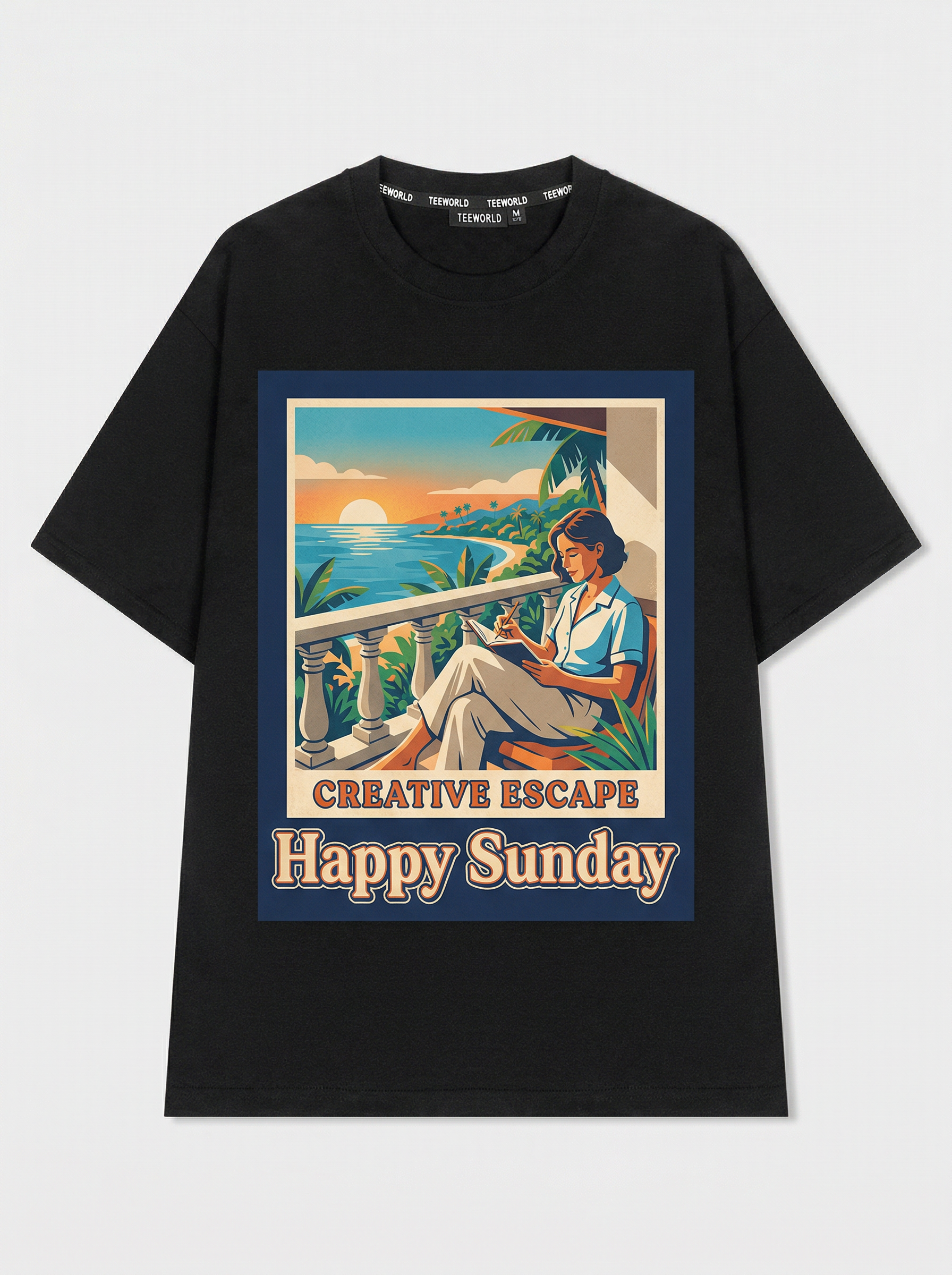 Balcony Muse - Thiết kế độc quyền từ Happy Sunday. Chất liệu: Cotton Premium 250gsm, form oversize thoải mái. In ấn: Công nghệ in sắc nét, bền màu sau nhiều lần giặt. Phong cách: Đồ họa nghệ thuật, nổi bật.