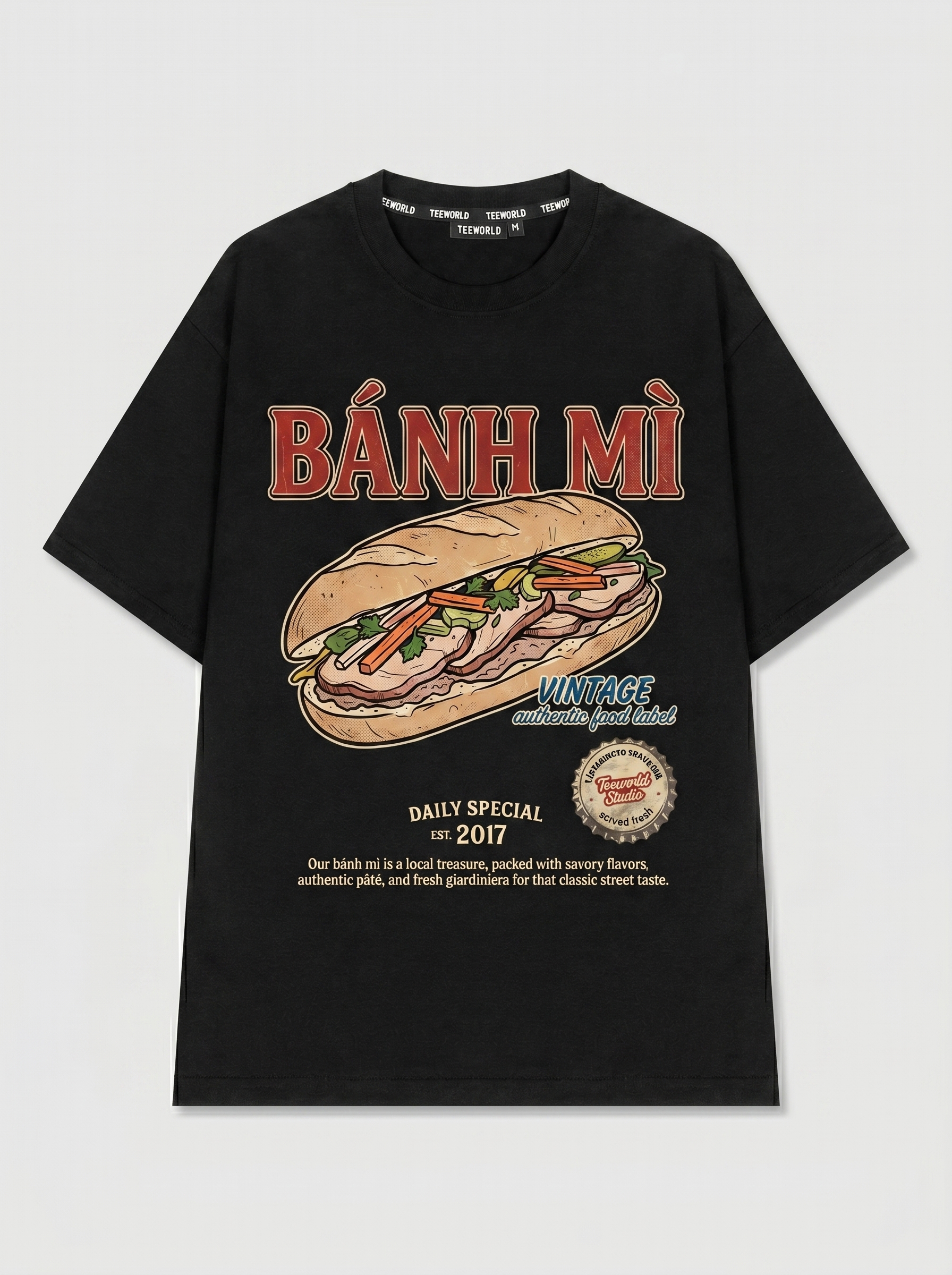 Bánh Mì Đặc Biệt - Thiết kế độc quyền từ Teeworld. Chất liệu: Cotton Premium 250gsm, form oversize thoải mái. In ấn: Công nghệ in sắc nét, bền màu sau nhiều lần giặt. Phong cách: Streetwear hiện đại, dễ phối đồ.