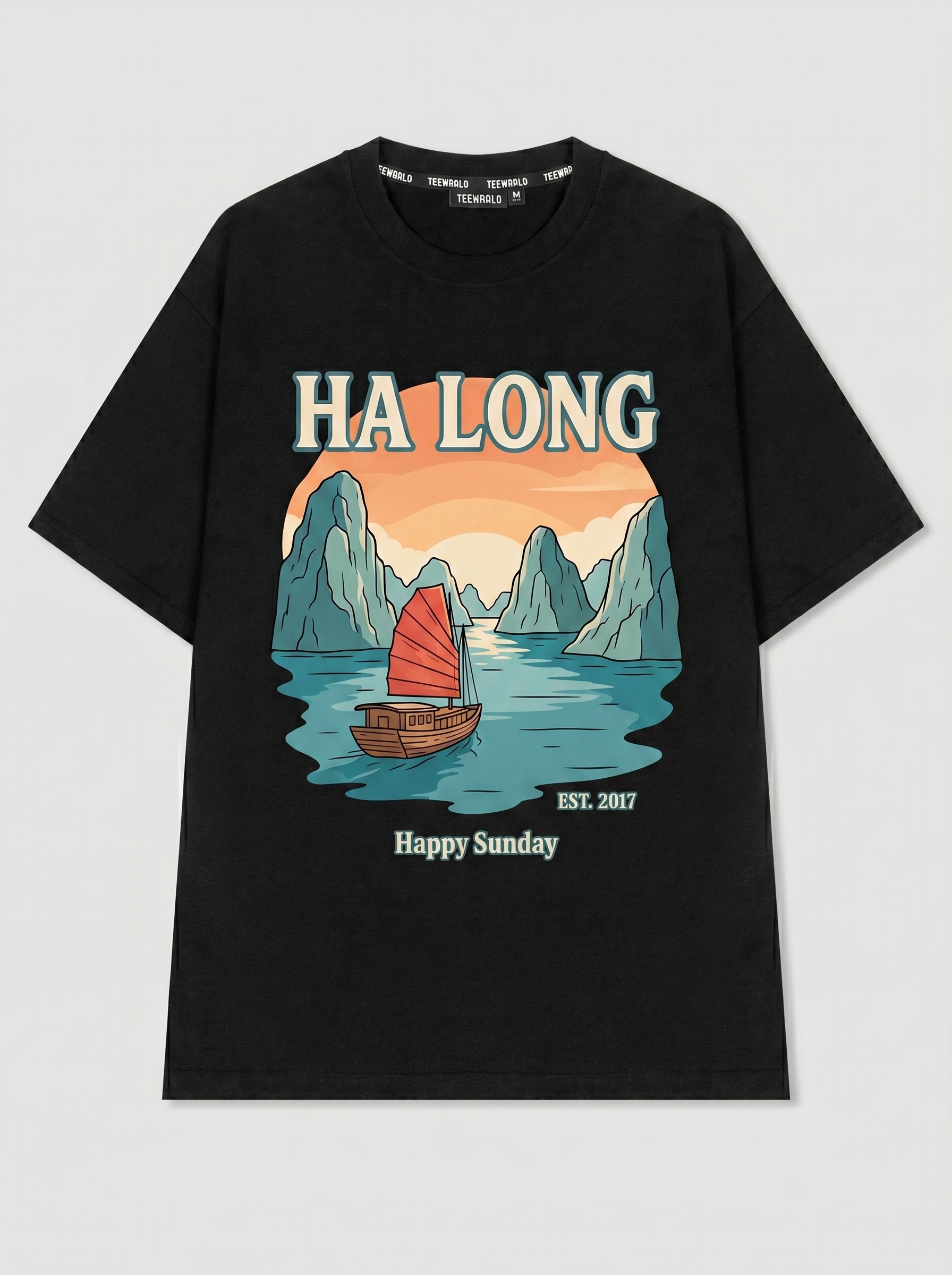Bay Voyage - Thiết kế độc quyền từ Happy Sunday. Chất liệu: Cotton Premium 250gsm, form oversize thoải mái. In ấn: Công nghệ in sắc nét, bền màu sau nhiều lần giặt. Phong cách: Đồ họa nghệ thuật, nổi bật.