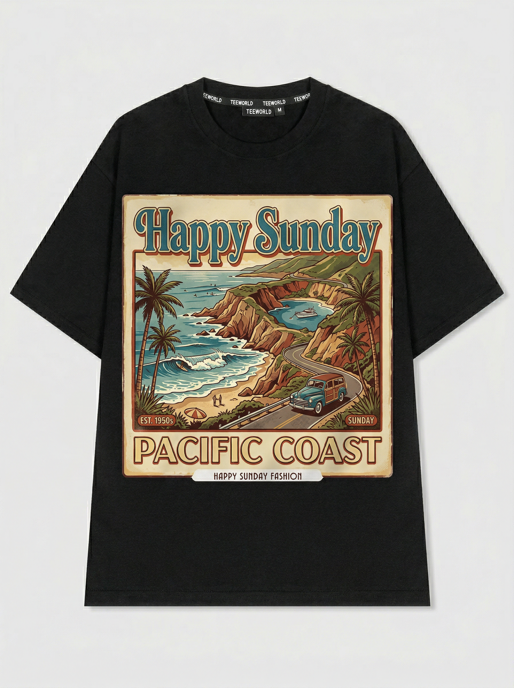 Beach Club - Thiết kế độc quyền từ Happy Sunday. Chất liệu: Cotton Premium 250gsm, form oversize thoải mái. In ấn: Công nghệ in sắc nét, bền màu sau nhiều lần giặt. Phong cách: Đồ họa nghệ thuật, nổi bật.