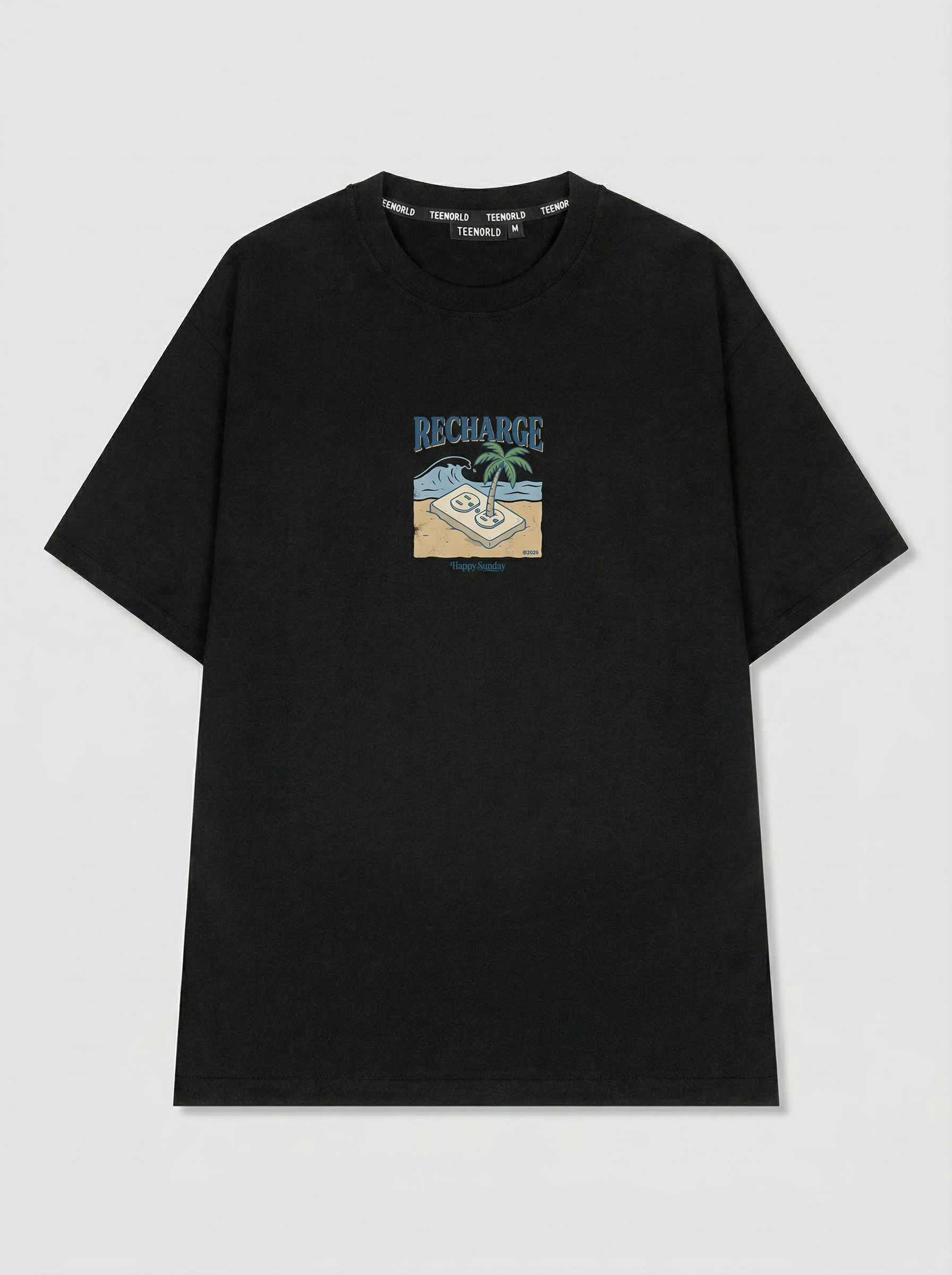 Beach Recharge - Thiết kế độc quyền từ Happy Sunday. Chất liệu: Cotton Premium 250gsm, form oversize thoải mái. In ấn: Công nghệ in sắc nét, bền màu sau nhiều lần giặt. Phong cách: Streetwear hiện đại, dễ phối đồ.