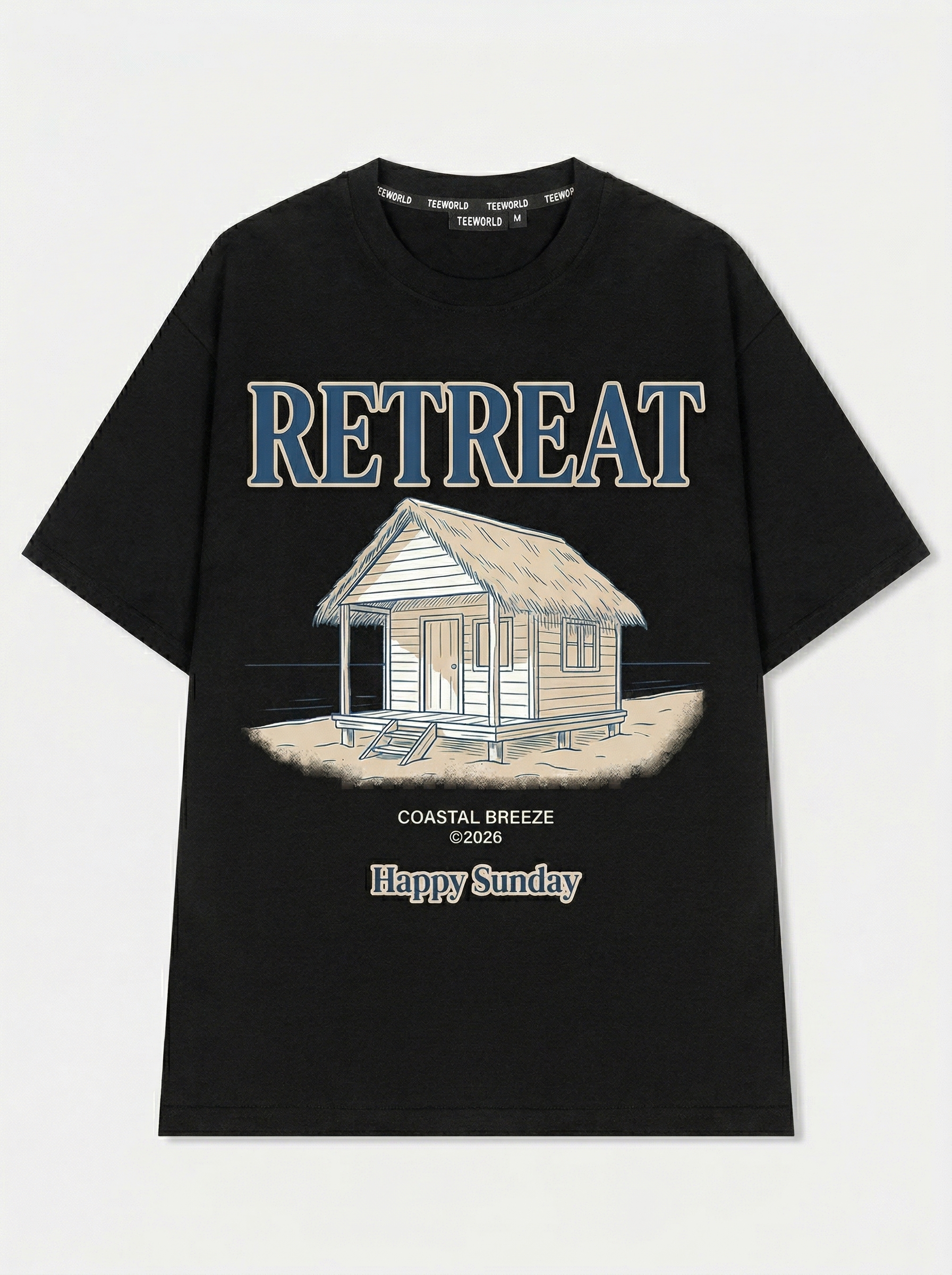 Beachside Haven - Thiết kế độc quyền từ Happy Sunday. Chất liệu: Cotton Premium 250gsm, form oversize thoải mái. In ấn: Công nghệ in sắc nét, bền màu sau nhiều lần giặt. Phong cách: Đồ họa nghệ thuật, nổi bật.