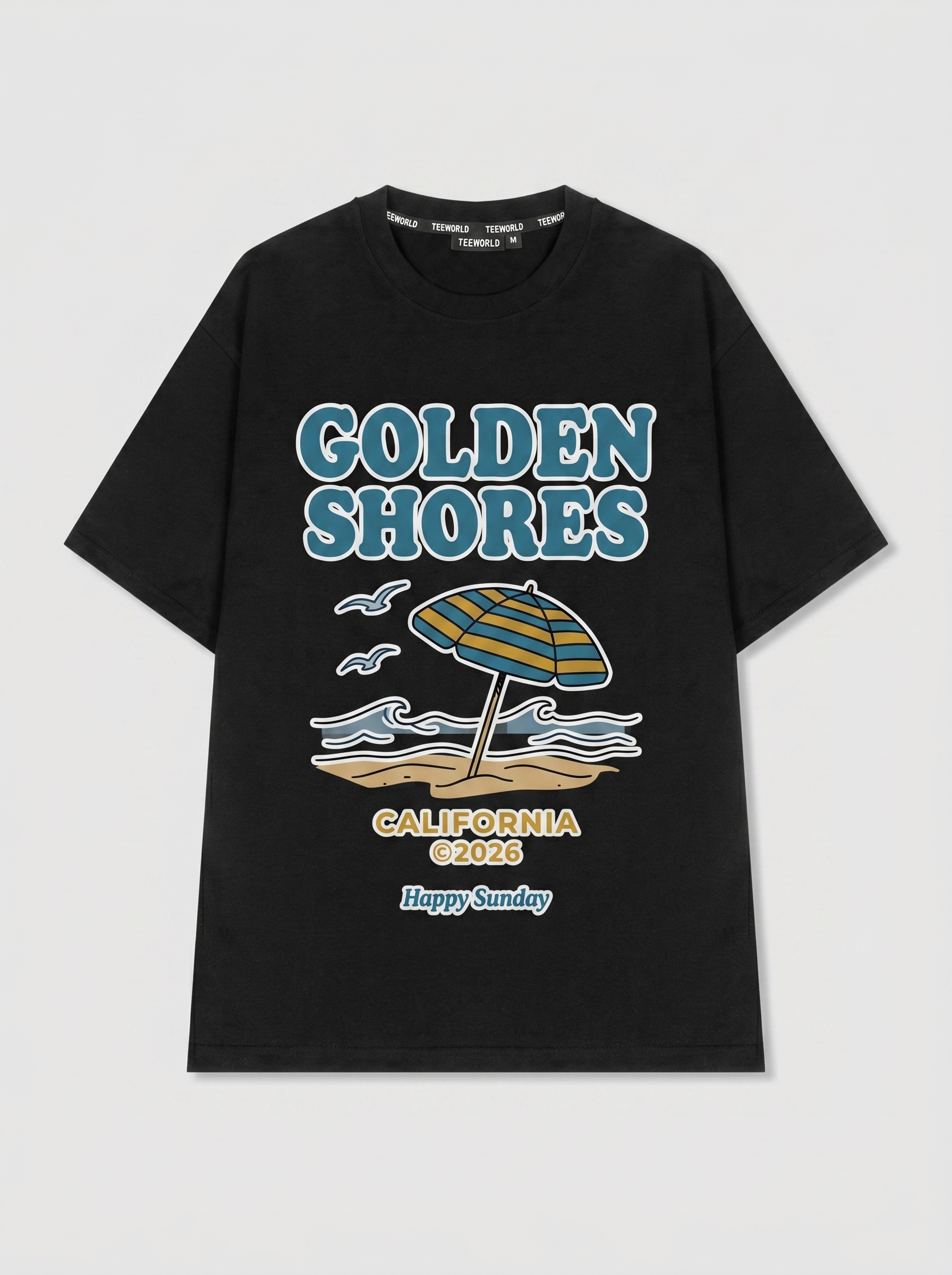 Beachside Retreat - Thiết kế độc quyền từ Happy Sunday. Chất liệu: Cotton Premium 250gsm, form oversize thoải mái. In ấn: Công nghệ in sắc nét, bền màu sau nhiều lần giặt. Phong cách: Đồ họa nghệ thuật, nổi bật.