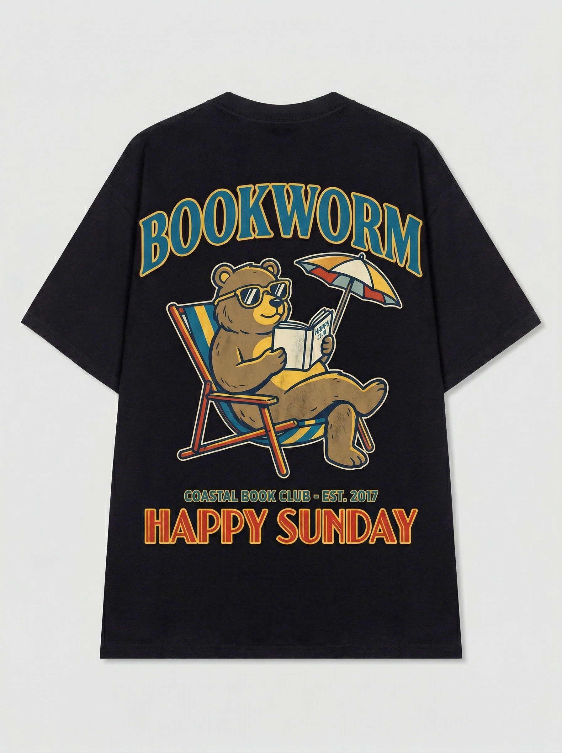 Bear Beach - Thiết kế độc quyền từ Happy Sunday. Chất liệu: Cotton Premium 250gsm, form oversize thoải mái. In ấn: Công nghệ in sắc nét, bền màu sau nhiều lần giặt. Phong cách: Streetwear hiện đại, dễ phối đồ.