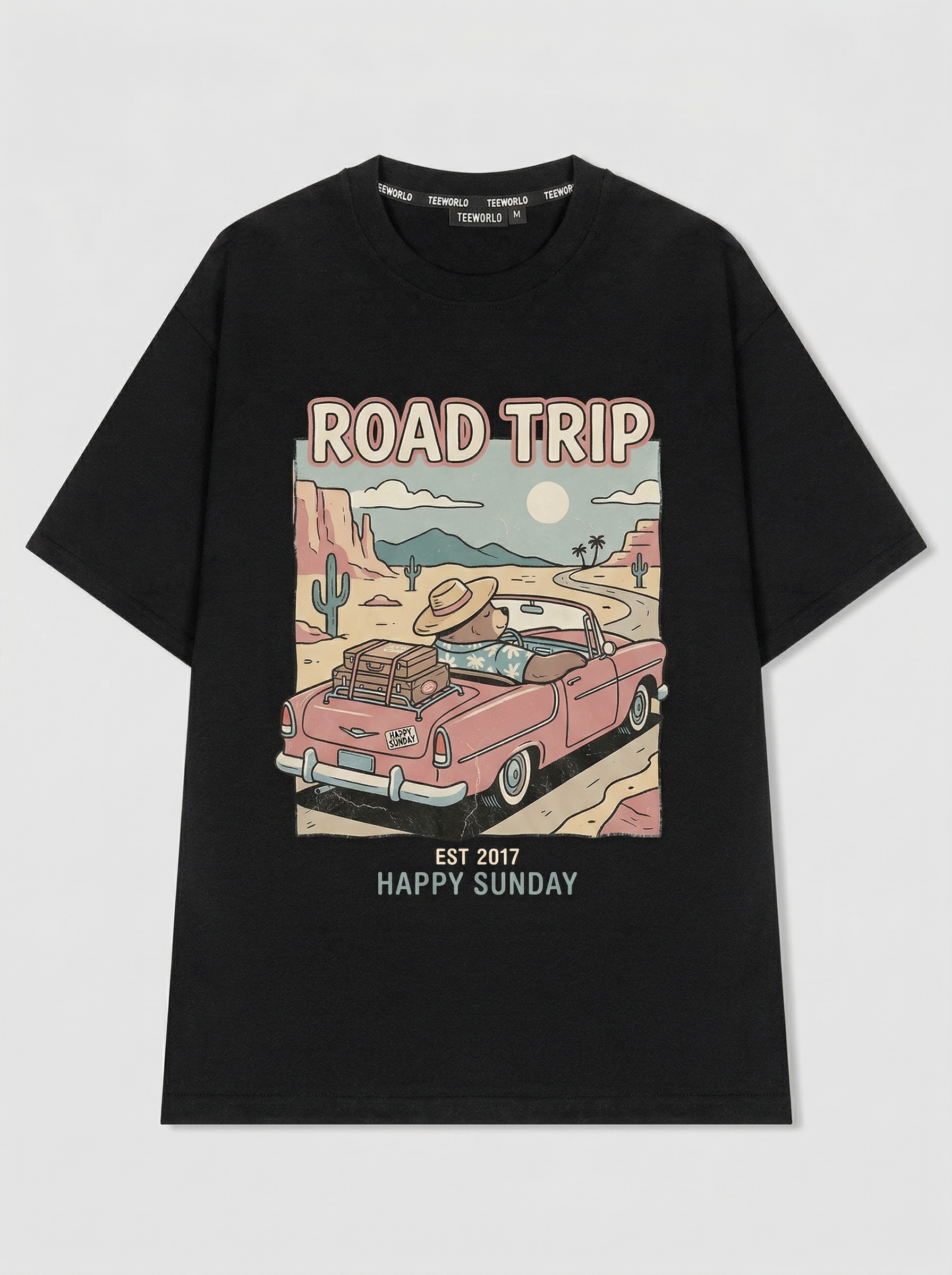 Bear Ride - Thiết kế độc quyền từ Happy Sunday. Chất liệu: Cotton Premium 250gsm, form oversize thoải mái. In ấn: Công nghệ in sắc nét, bền màu sau nhiều lần giặt. Phong cách: Streetwear hiện đại, dễ phối đồ.