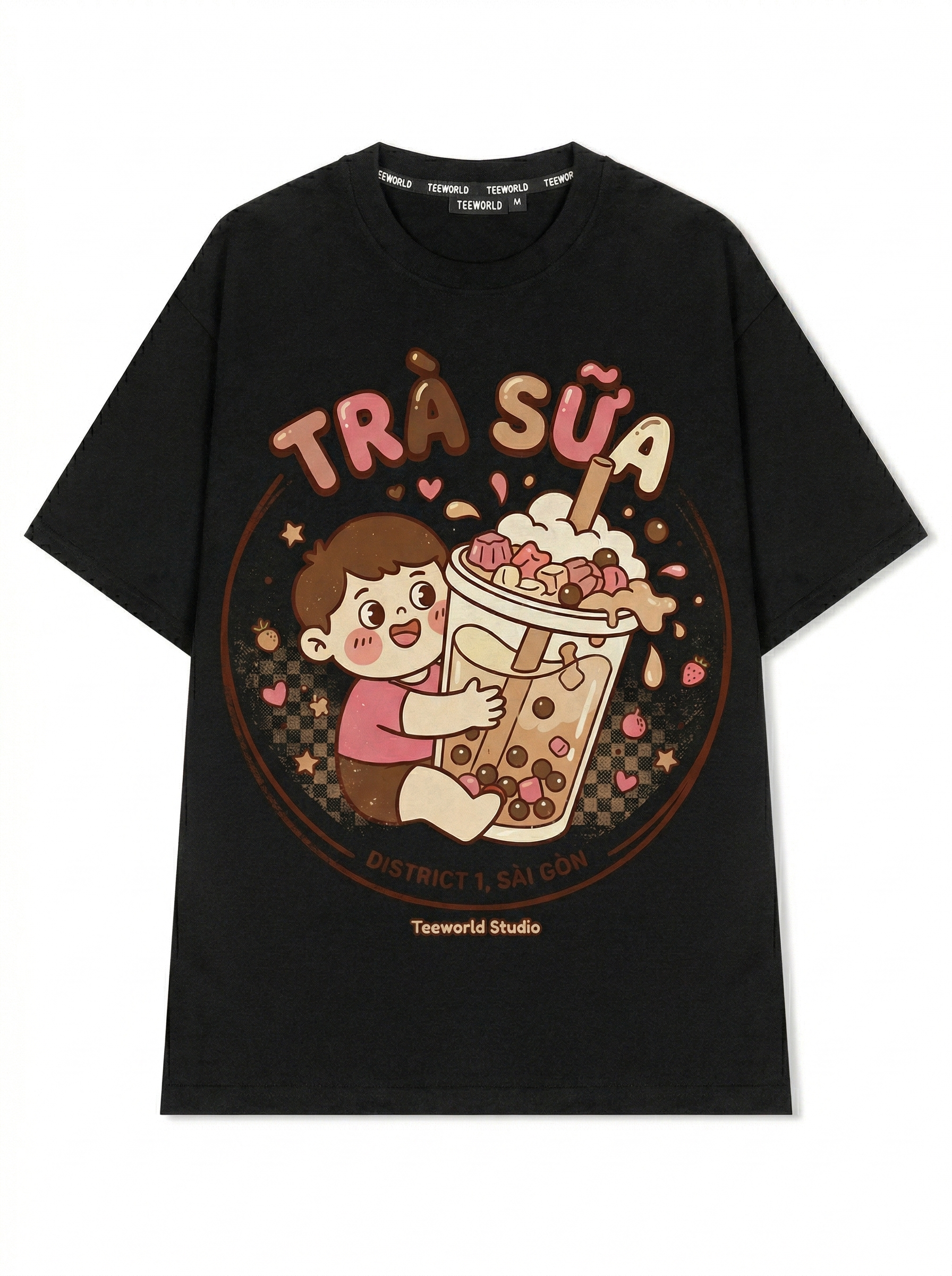 Boba Vibes - Thiết kế độc quyền từ Teeworld. Chất liệu: Cotton Premium 250gsm, form oversize thoải mái. In ấn: Công nghệ in sắc nét, bền màu sau nhiều lần giặt. Phong cách: Streetwear hiện đại, dễ phối đồ.