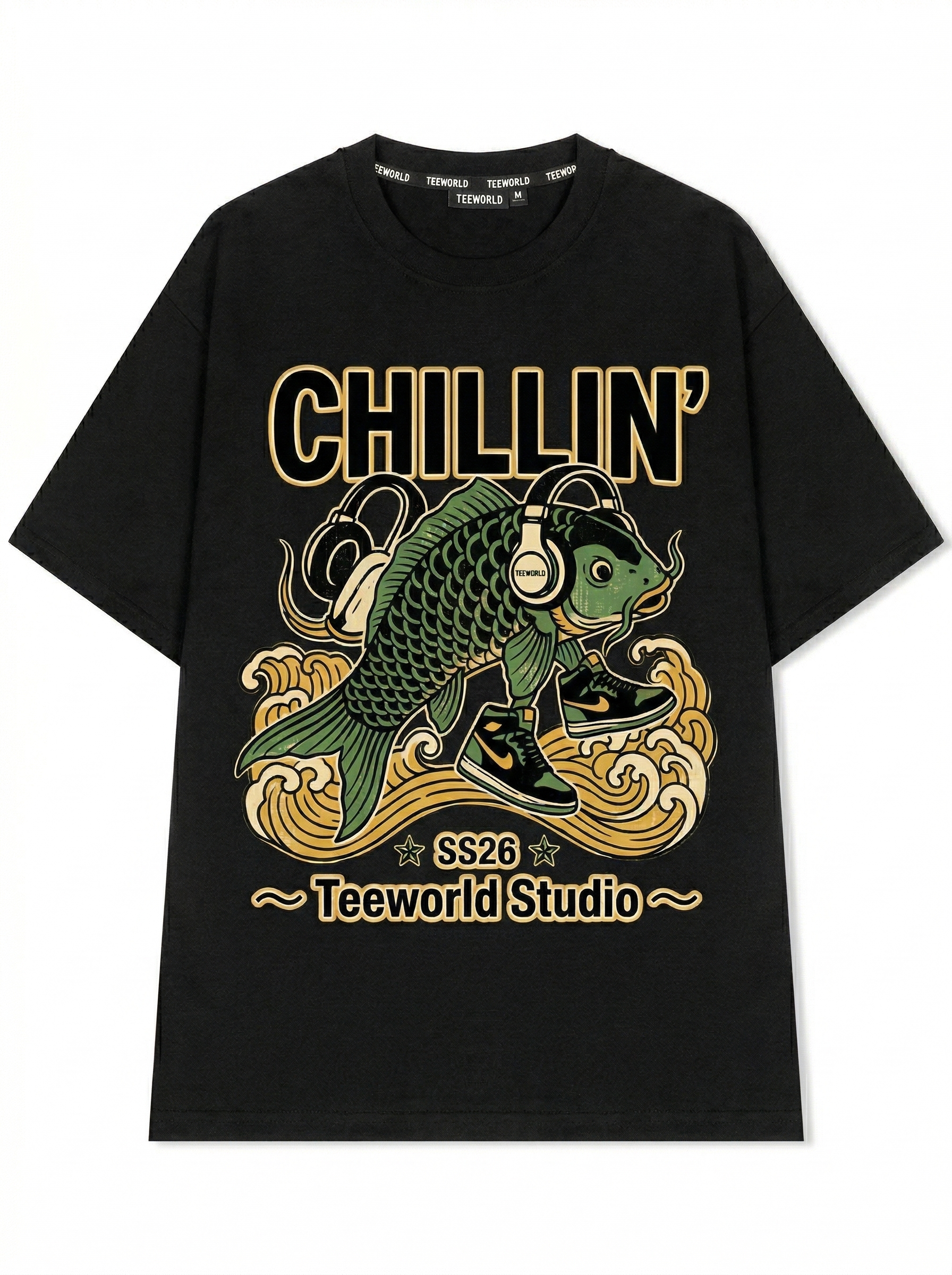 Cá Nghe Nhạc - Thiết kế độc quyền từ Teeworld. Chất liệu: Cotton Premium 250gsm, form oversize thoải mái. In ấn: Công nghệ in sắc nét, bền màu sau nhiều lần giặt. Phong cách: Streetwear hiện đại, dễ phối đồ.