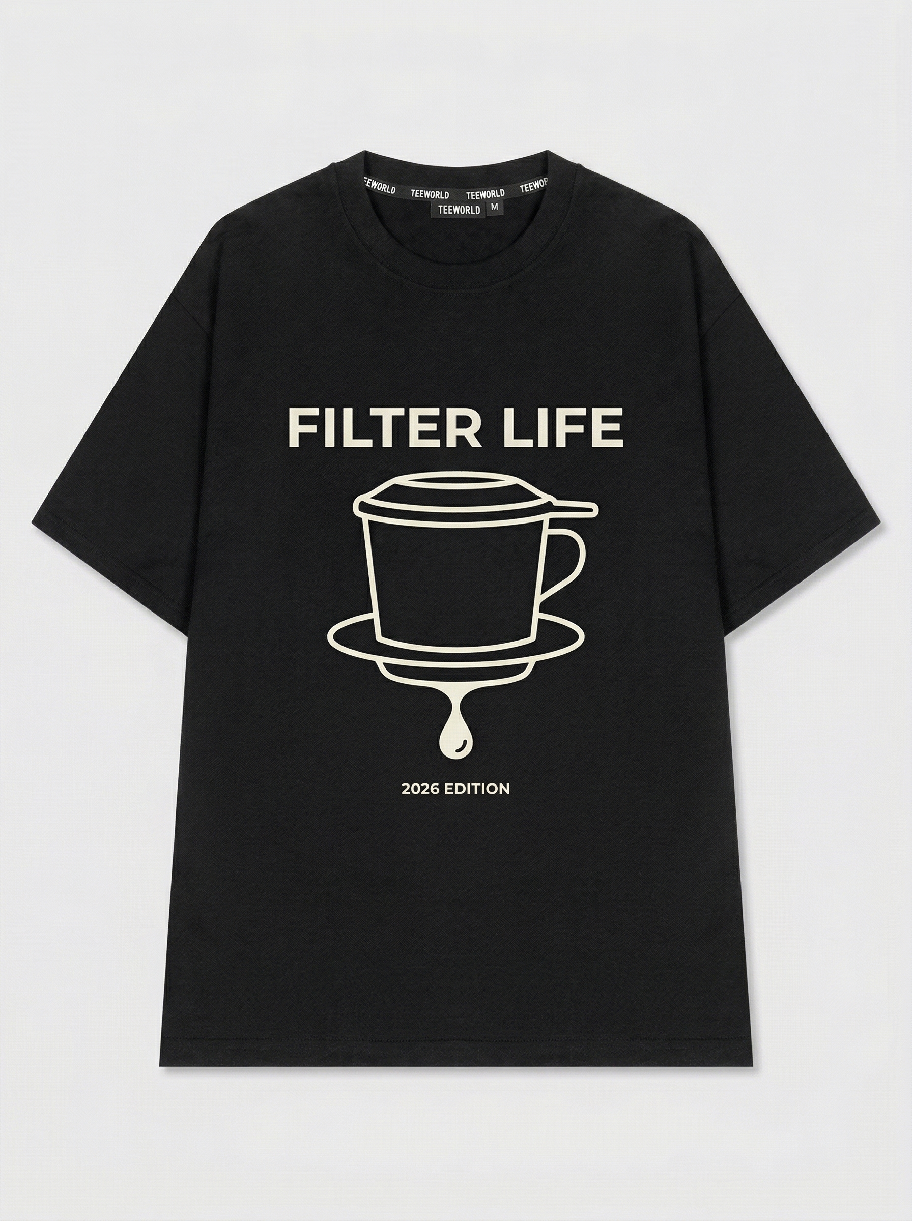 Cà Phê Tối Giản - Thiết kế độc quyền từ Teeworld. Chất liệu: Cotton Premium 250gsm, form oversize thoải mái. In ấn: Công nghệ in sắc nét, bền màu sau nhiều lần giặt. Phong cách: Streetwear hiện đại, dễ phối đồ.