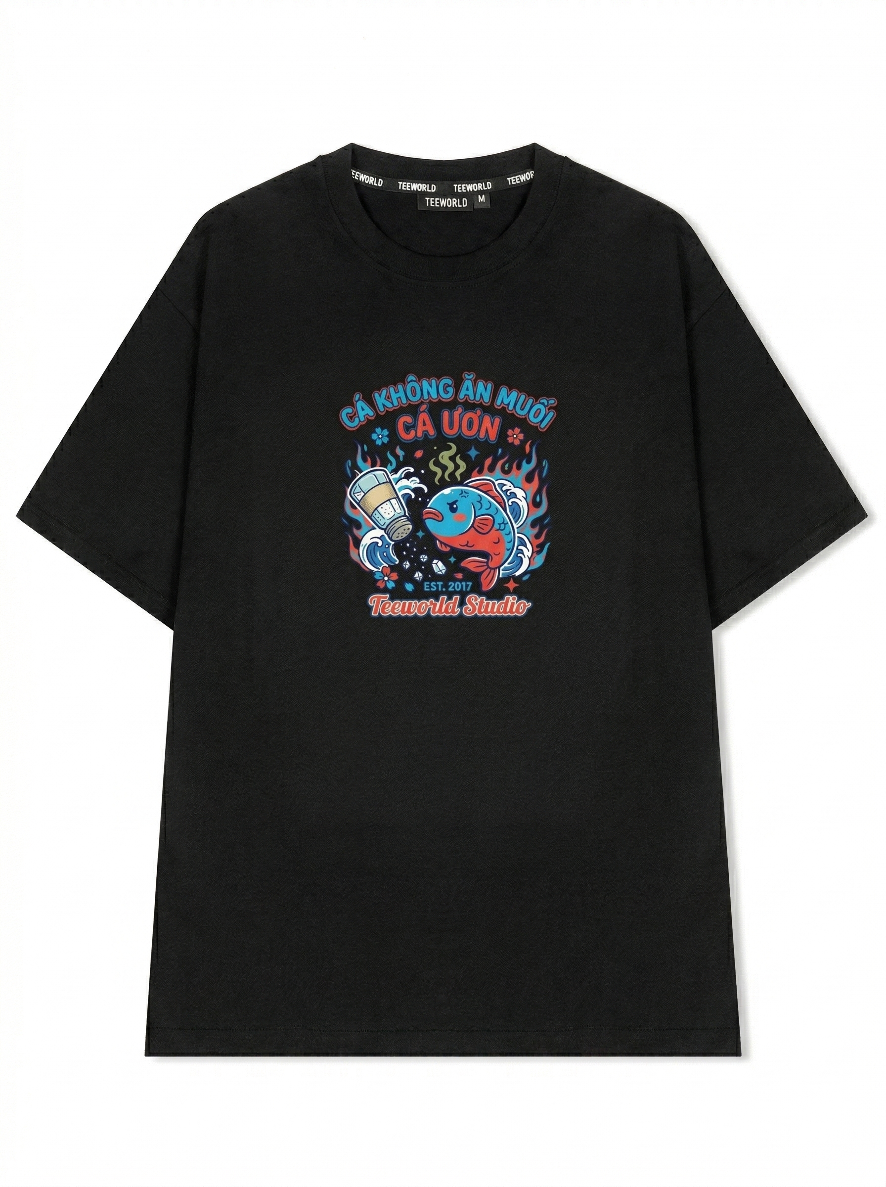 Cá Ươn - Thiết kế độc quyền từ Teeworld. Chất liệu: Cotton Premium 250gsm, form oversize thoải mái. In ấn: Công nghệ in sắc nét, bền màu sau nhiều lần giặt. Phong cách: Streetwear hiện đại, dễ phối đồ.