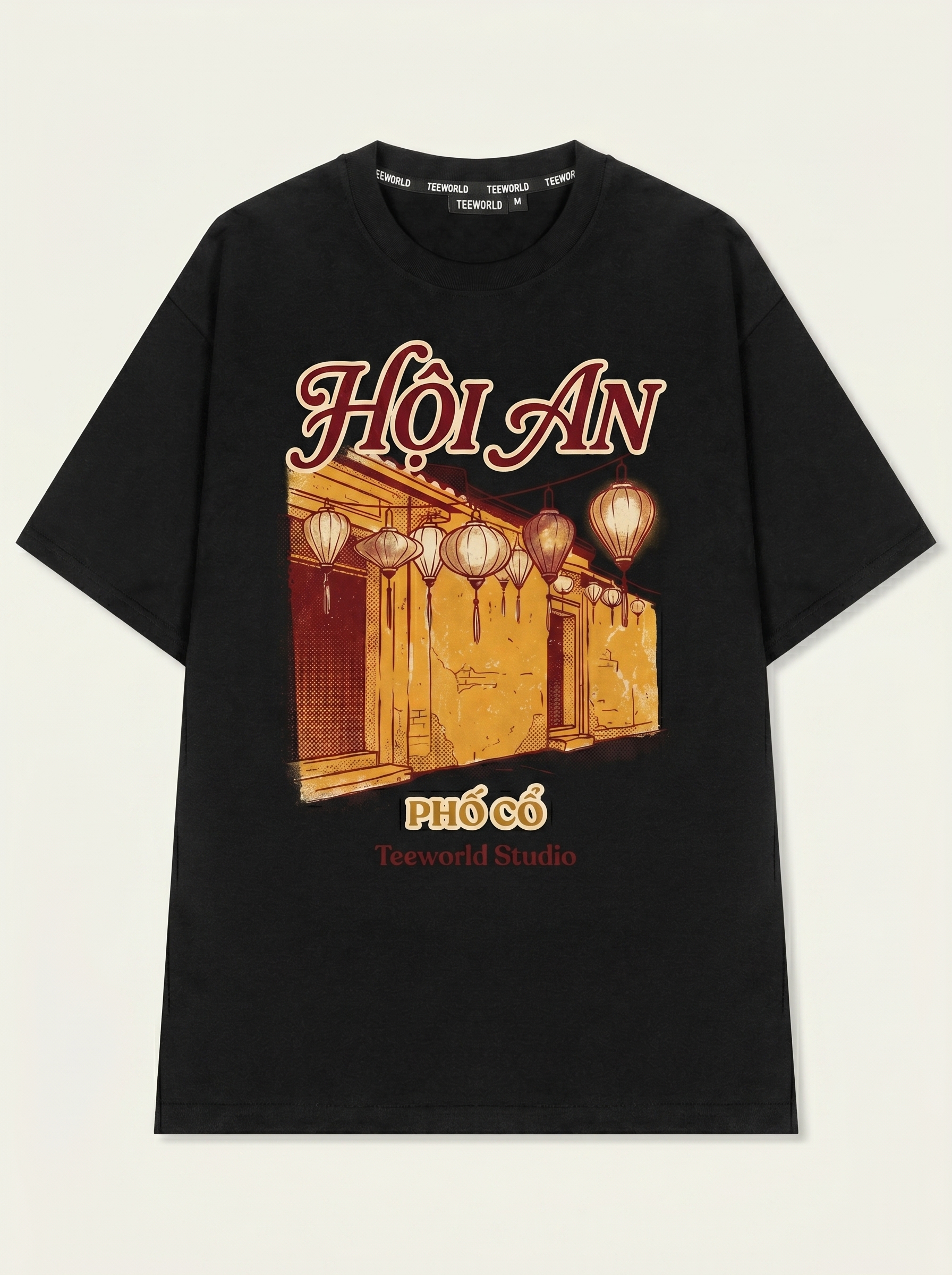 Phố Hội - Thiết kế độc quyền từ Teeworld. Chất liệu: Cotton Premium 250gsm, form oversize thoải mái. In ấn: Công nghệ in sắc nét, bền màu sau nhiều lần giặt. Phong cách: Streetwear hiện đại, dễ phối đồ.