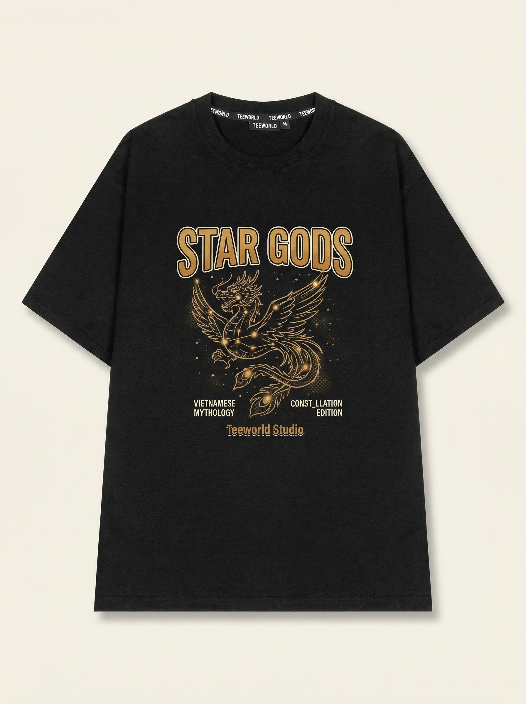 Celestial Myth - Thiết kế độc quyền từ Teeworld. Chất liệu: Cotton Premium 250gsm, form oversize thoải mái. In ấn: Công nghệ in sắc nét, bền màu sau nhiều lần giặt. Phong cách: Streetwear hiện đại, dễ phối đồ.