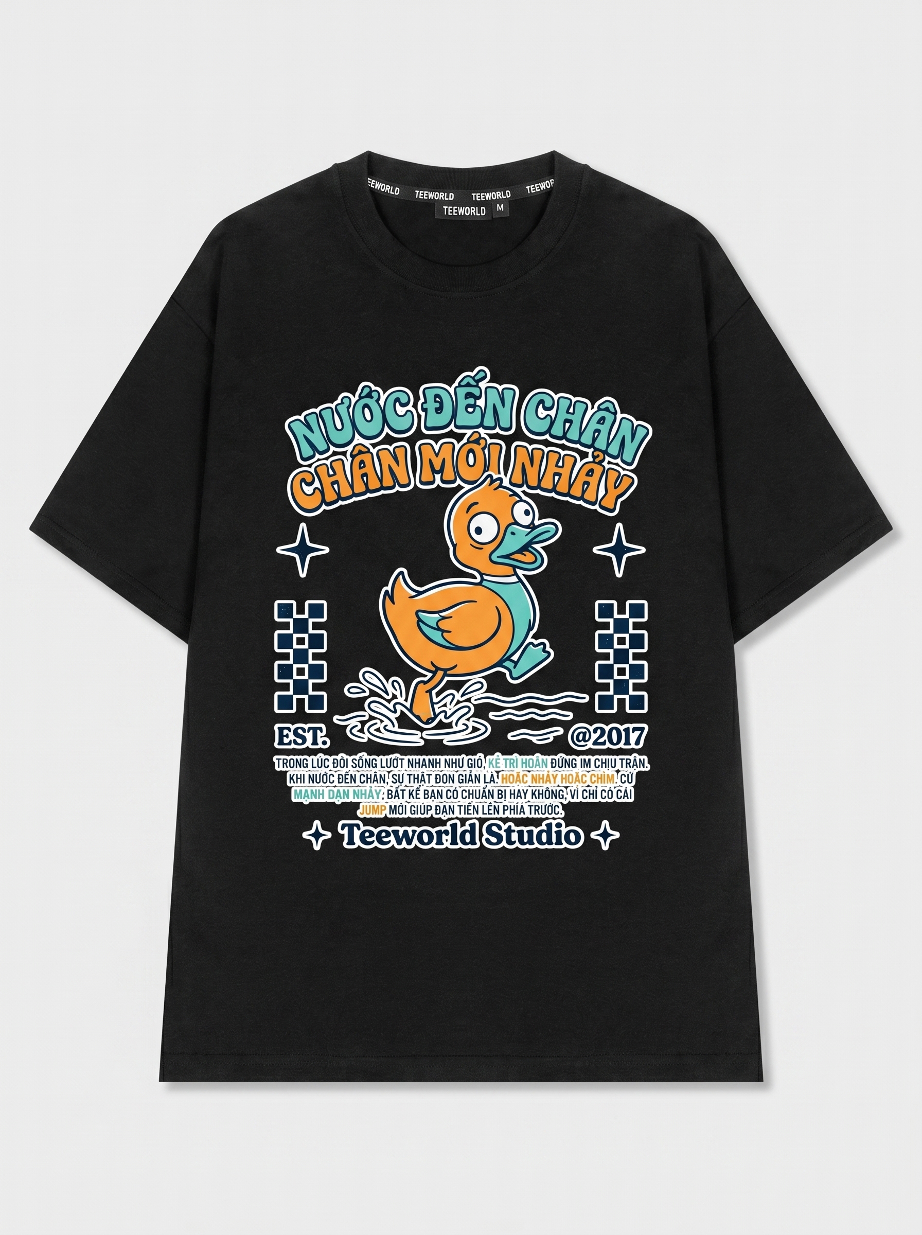 Chân Nhảy - Thiết kế độc quyền từ Teeworld. Chất liệu: Cotton Premium 250gsm, form oversize thoải mái. In ấn: Công nghệ in sắc nét, bền màu sau nhiều lần giặt. Phong cách: Streetwear hiện đại, dễ phối đồ.