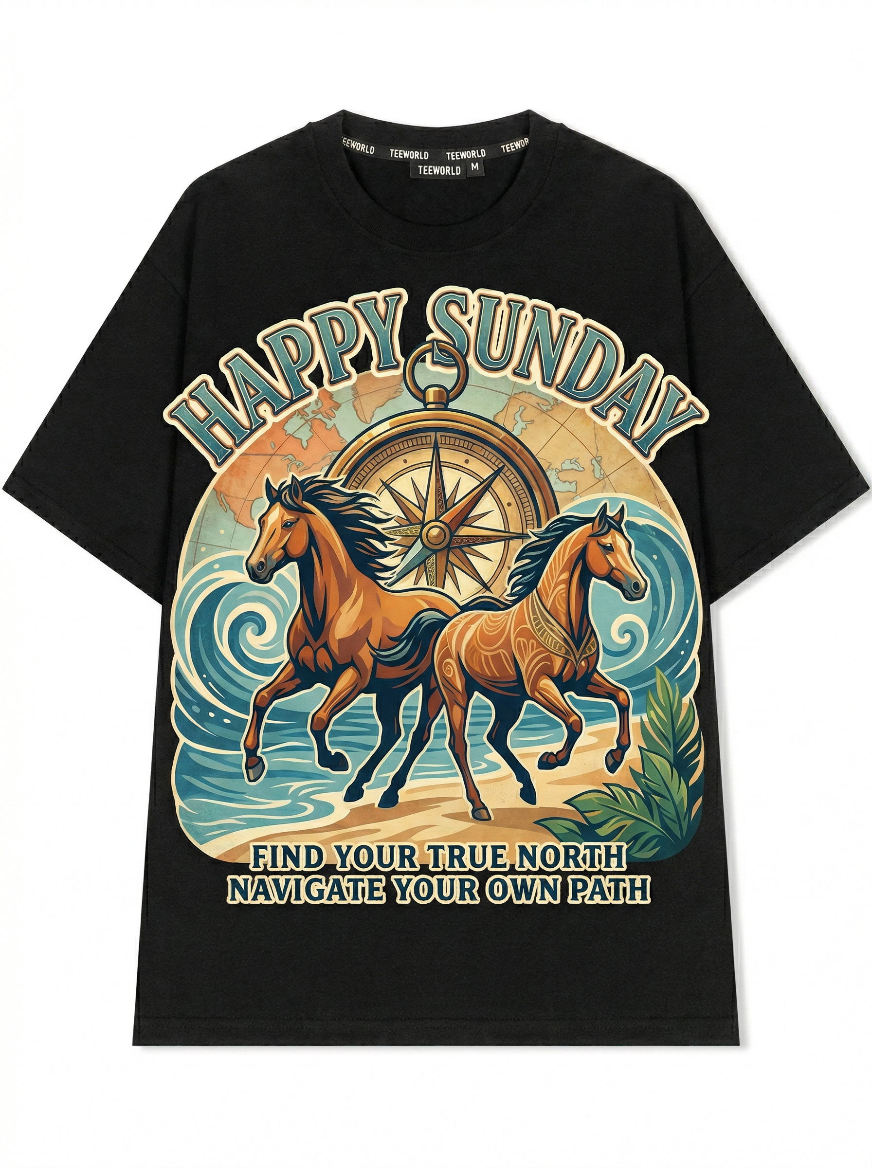 Chart Your Course - Thiết kế độc quyền từ Happy Sunday. Chất liệu: Cotton Premium 250gsm, form oversize thoải mái. In ấn: Công nghệ in sắc nét, bền màu sau nhiều lần giặt. Phong cách: Đồ họa nghệ thuật, nổi bật.