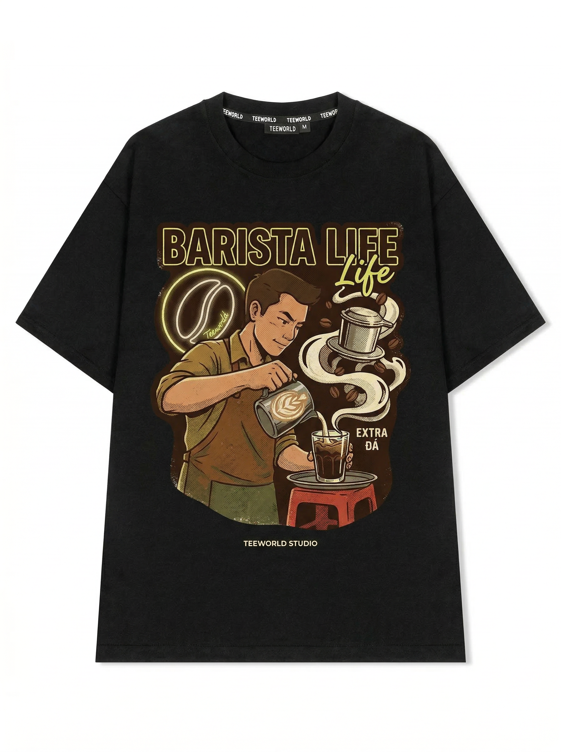 Chế Cà Phê - Thiết kế độc quyền từ Teeworld. Chất liệu: Cotton Premium 250gsm, form oversize thoải mái. In ấn: Công nghệ in sắc nét, bền màu sau nhiều lần giặt. Phong cách: Streetwear hiện đại, dễ phối đồ.