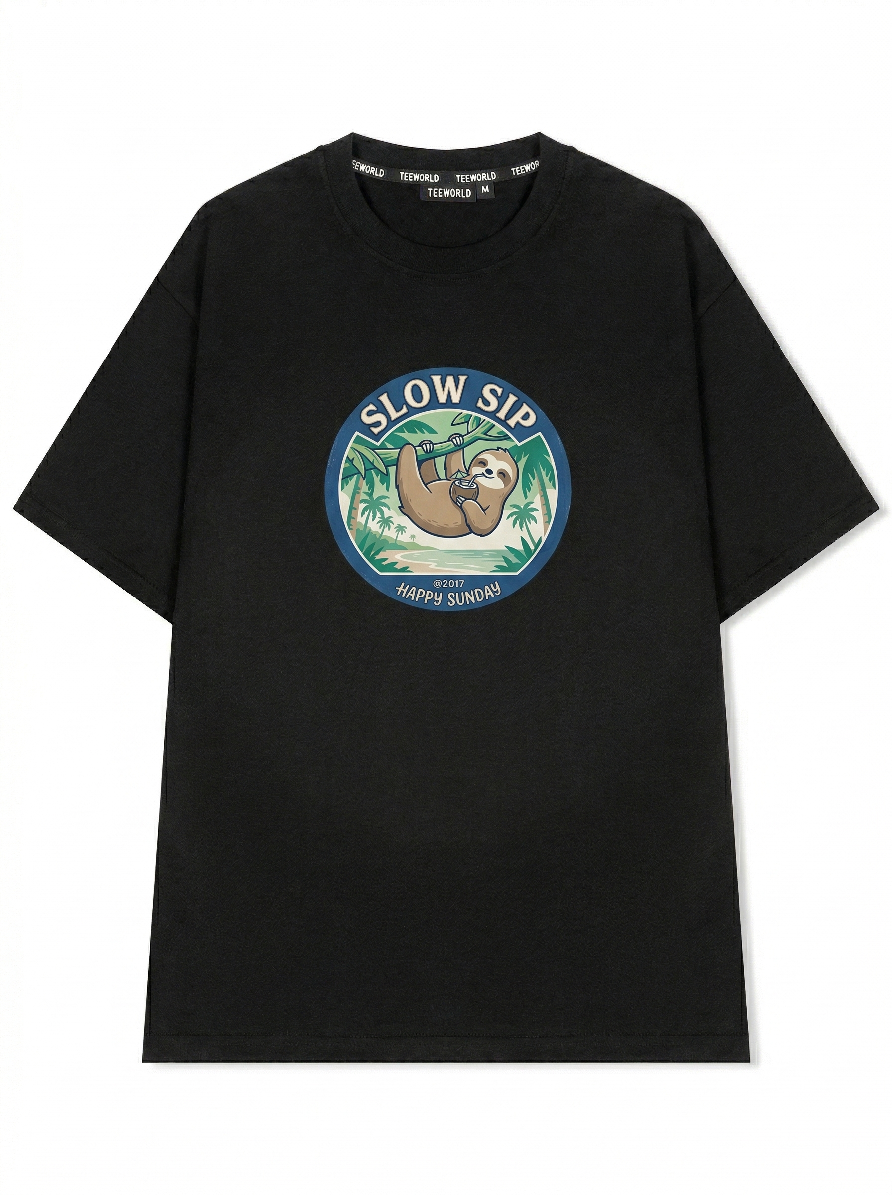 Chill Sloth - Thiết kế độc quyền từ Happy Sunday. Chất liệu: Cotton Premium 250gsm, form oversize thoải mái. In ấn: Công nghệ in sắc nét, bền màu sau nhiều lần giặt. Phong cách: Streetwear hiện đại, dễ phối đồ.