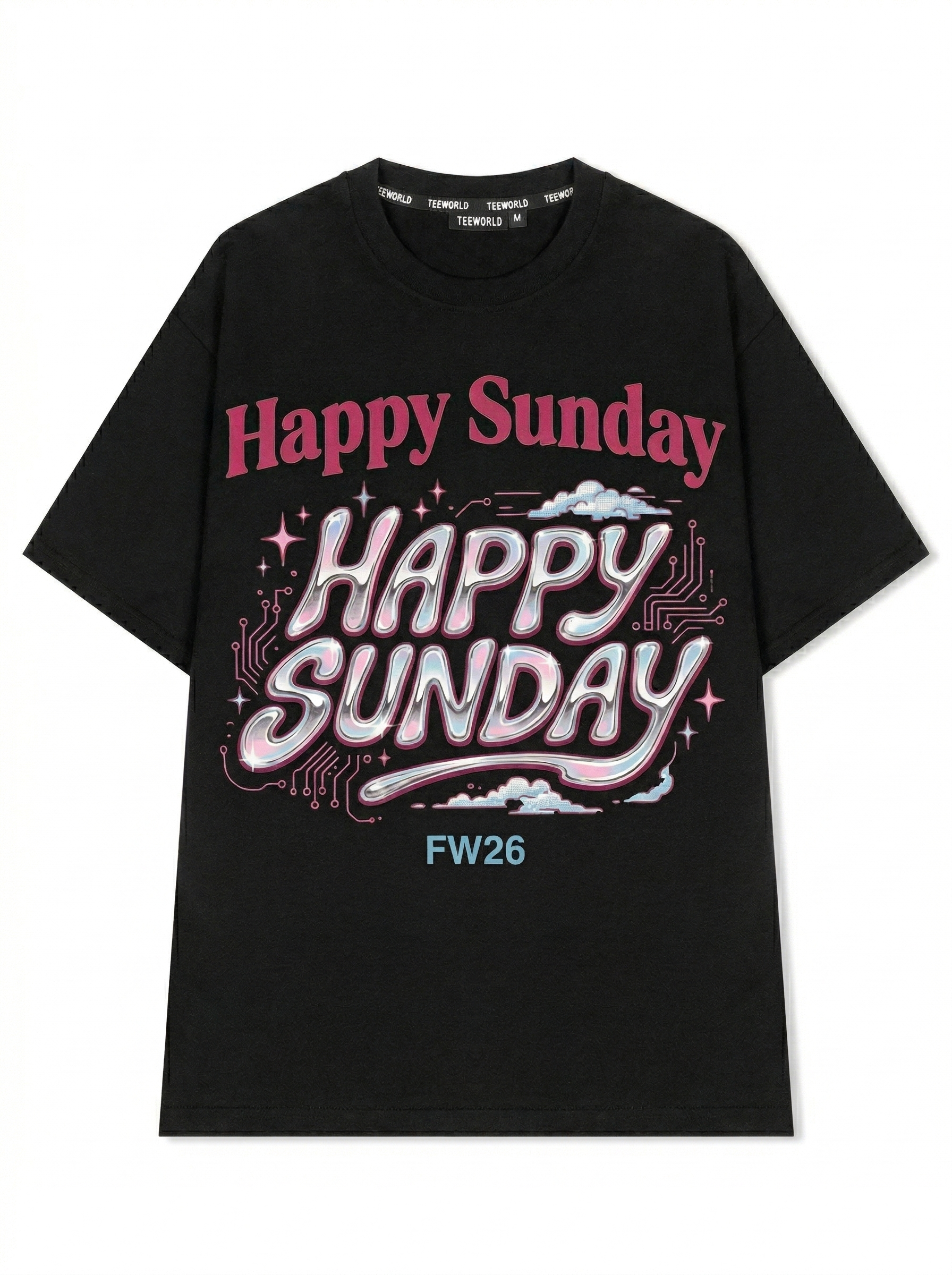 Chrome Shine - Thiết kế độc quyền từ Happy Sunday. Chất liệu: Cotton Premium 250gsm, form oversize thoải mái. In ấn: Công nghệ in sắc nét, bền màu sau nhiều lần giặt. Phong cách: Đồ họa nghệ thuật, nổi bật.
