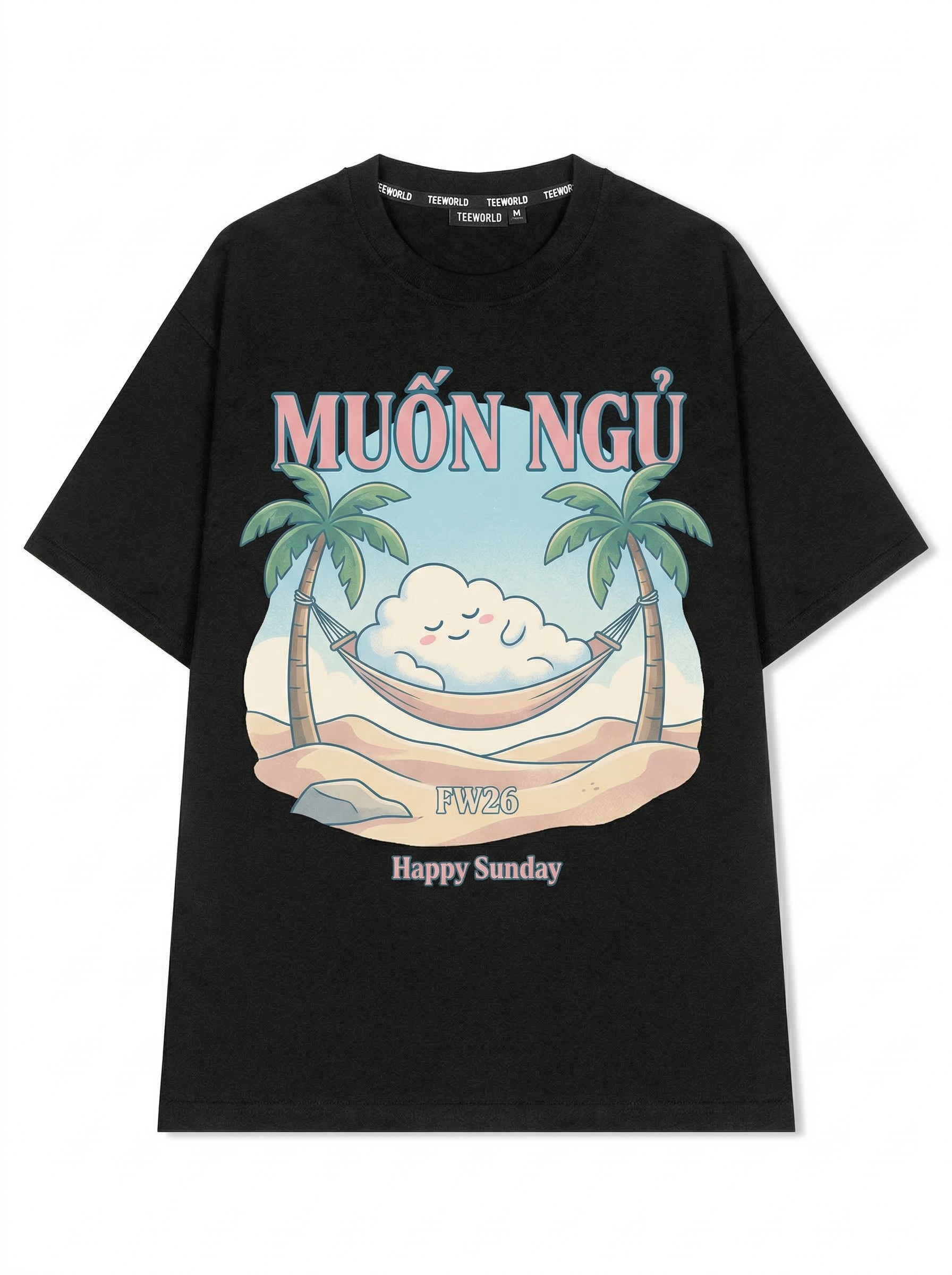 Cloud Rest - Thiết kế độc quyền từ Happy Sunday. Chất liệu: Cotton Premium 250gsm, form oversize thoải mái. In ấn: Công nghệ in sắc nét, bền màu sau nhiều lần giặt. Phong cách: Streetwear hiện đại, dễ phối đồ.