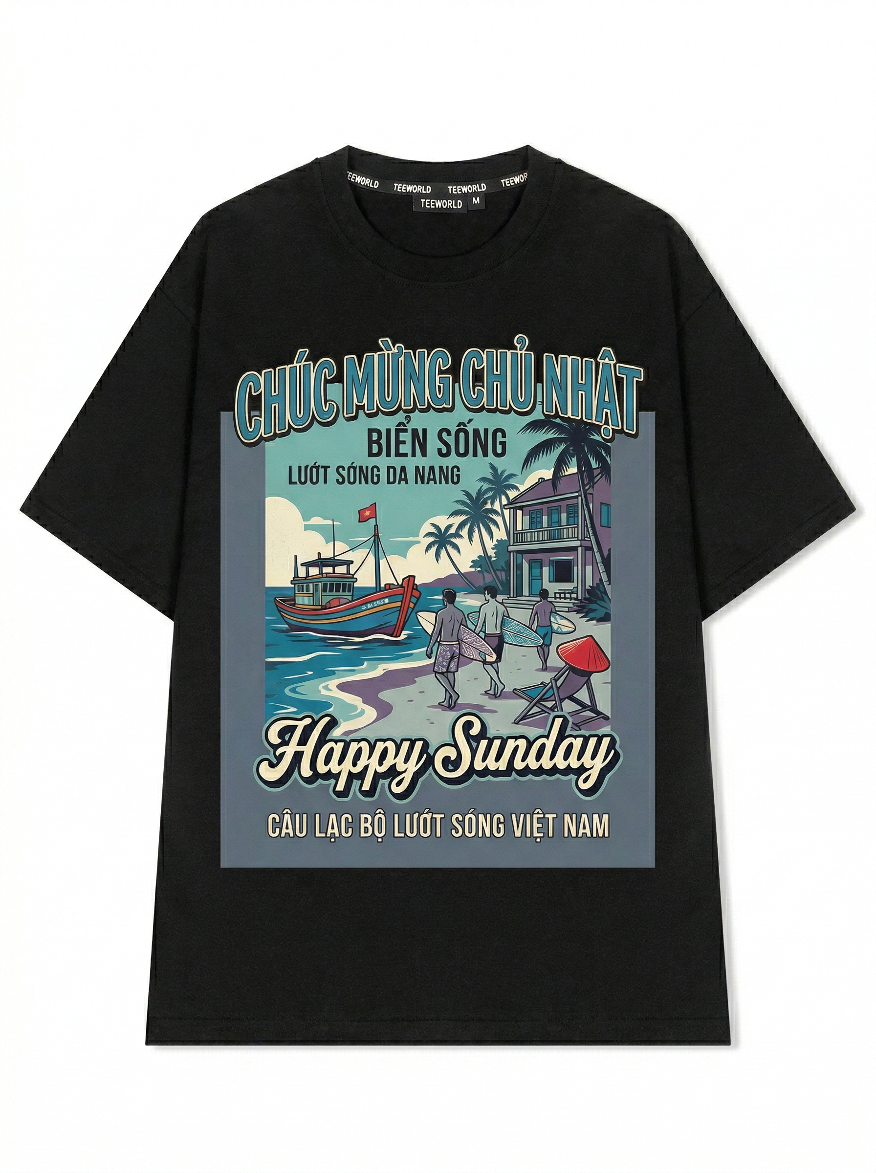 Coastal Drift - Thiết kế độc quyền từ Happy Sunday. Chất liệu: Cotton Premium 250gsm, form oversize thoải mái. In ấn: Công nghệ in sắc nét, bền màu sau nhiều lần giặt. Phong cách: Đồ họa nghệ thuật, nổi bật.