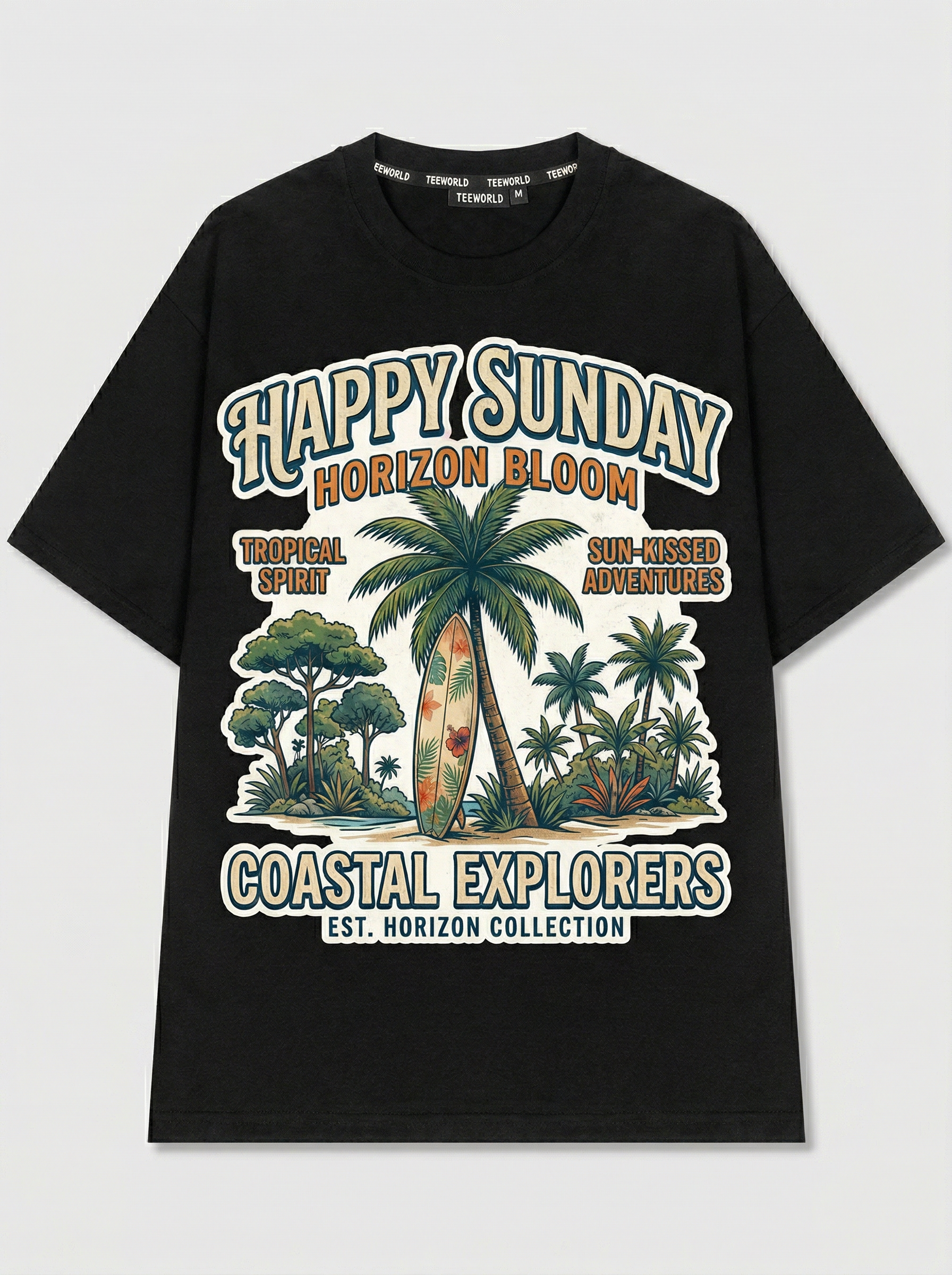 Coastal Drift - Thiết kế độc quyền từ Happy Sunday. Chất liệu: Cotton Premium 250gsm, form oversize thoải mái. In ấn: Công nghệ in sắc nét, bền màu sau nhiều lần giặt. Phong cách: Đồ họa nghệ thuật, nổi bật.