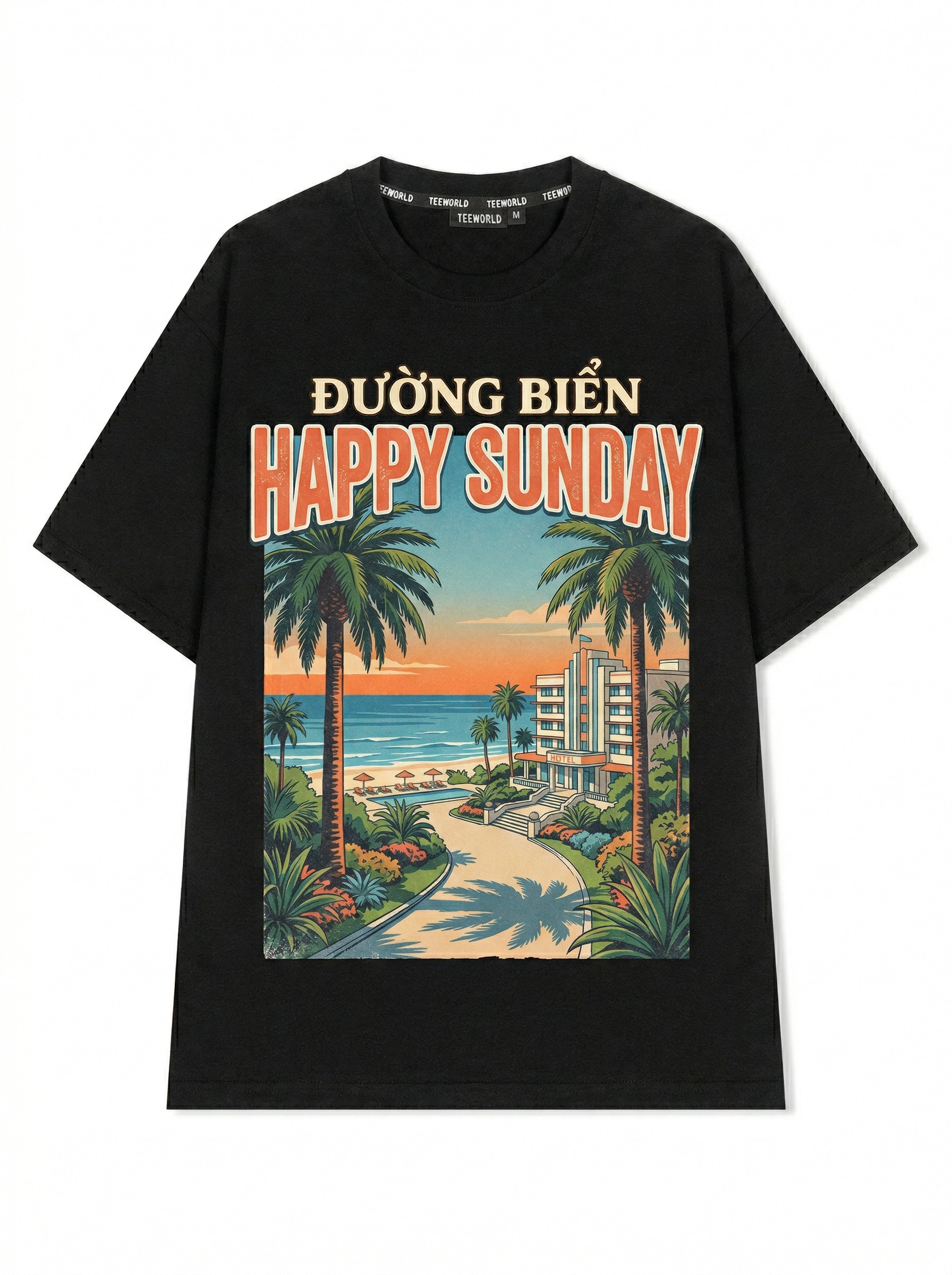 Coastal Drift - Thiết kế độc quyền từ Happy Sunday. Chất liệu: Cotton Premium 250gsm, form oversize thoải mái. In ấn: Công nghệ in sắc nét, bền màu sau nhiều lần giặt. Phong cách: Đồ họa nghệ thuật, nổi bật.