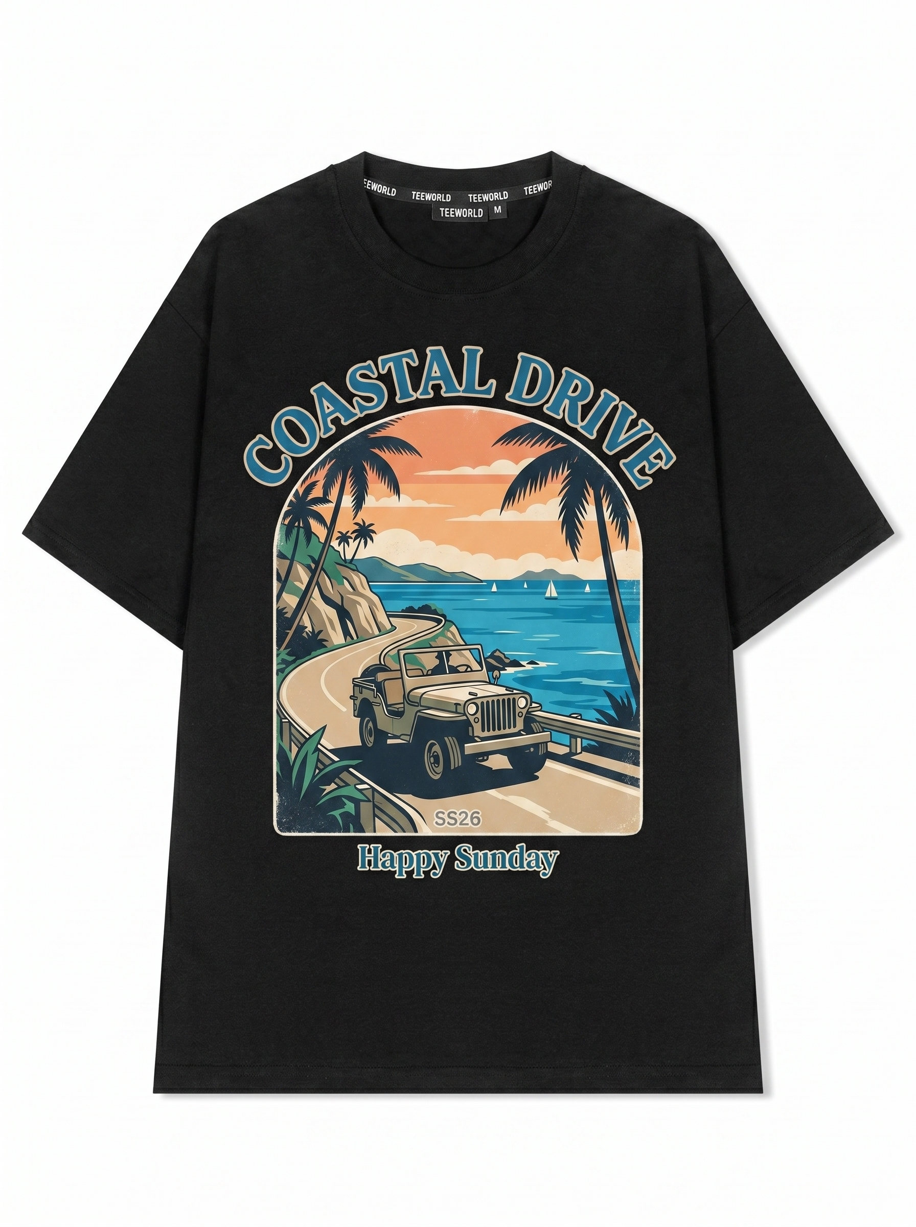 Coastal Drift - Thiết kế độc quyền từ Happy Sunday. Chất liệu: Cotton Premium 250gsm, form oversize thoải mái. In ấn: Công nghệ in sắc nét, bền màu sau nhiều lần giặt. Phong cách: Đồ họa nghệ thuật, nổi bật.