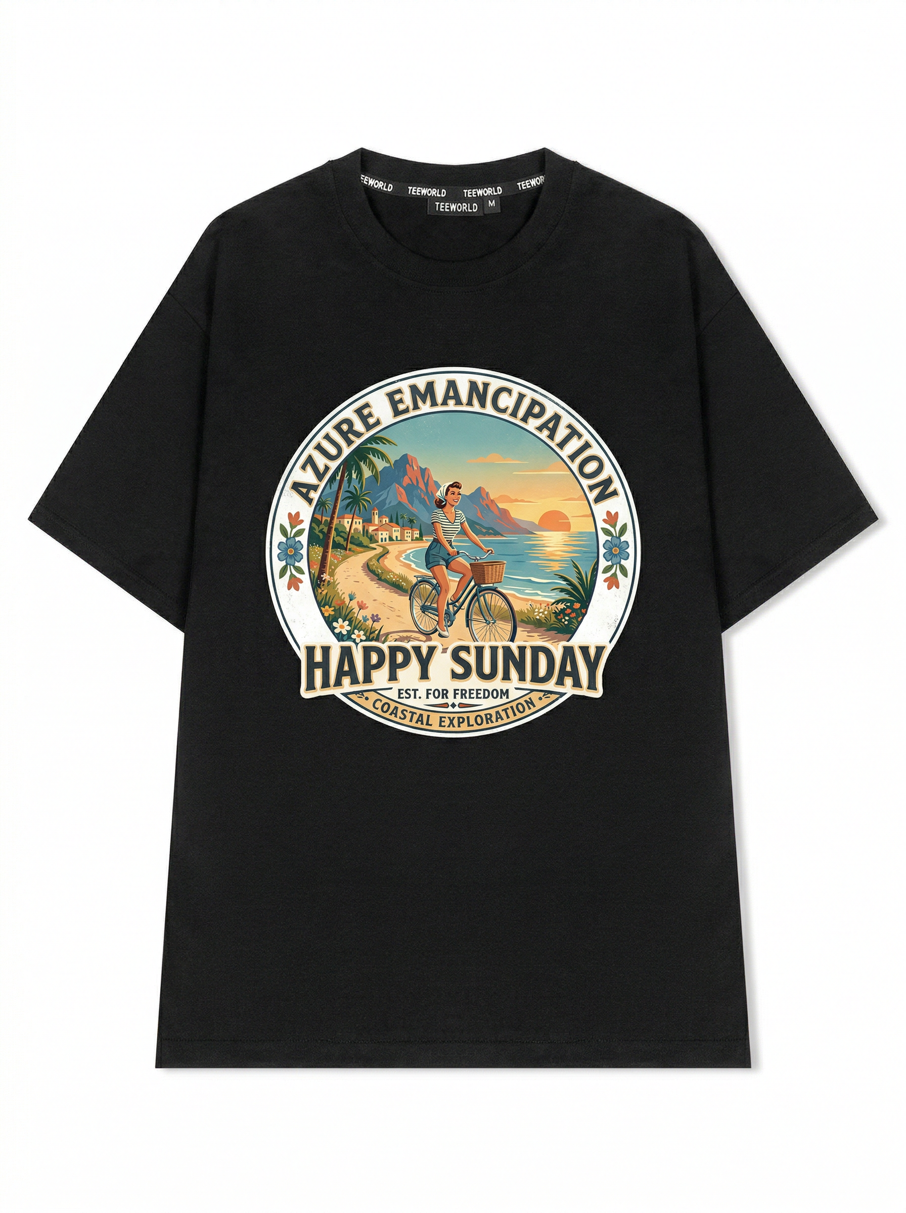 Coastal Path Explorer - Thiết kế độc quyền từ Happy Sunday. Chất liệu: Cotton Premium 250gsm, form oversize thoải mái. In ấn: Công nghệ in sắc nét, bền màu sau nhiều lần giặt. Phong cách: Đồ họa nghệ thuật, nổi bật.