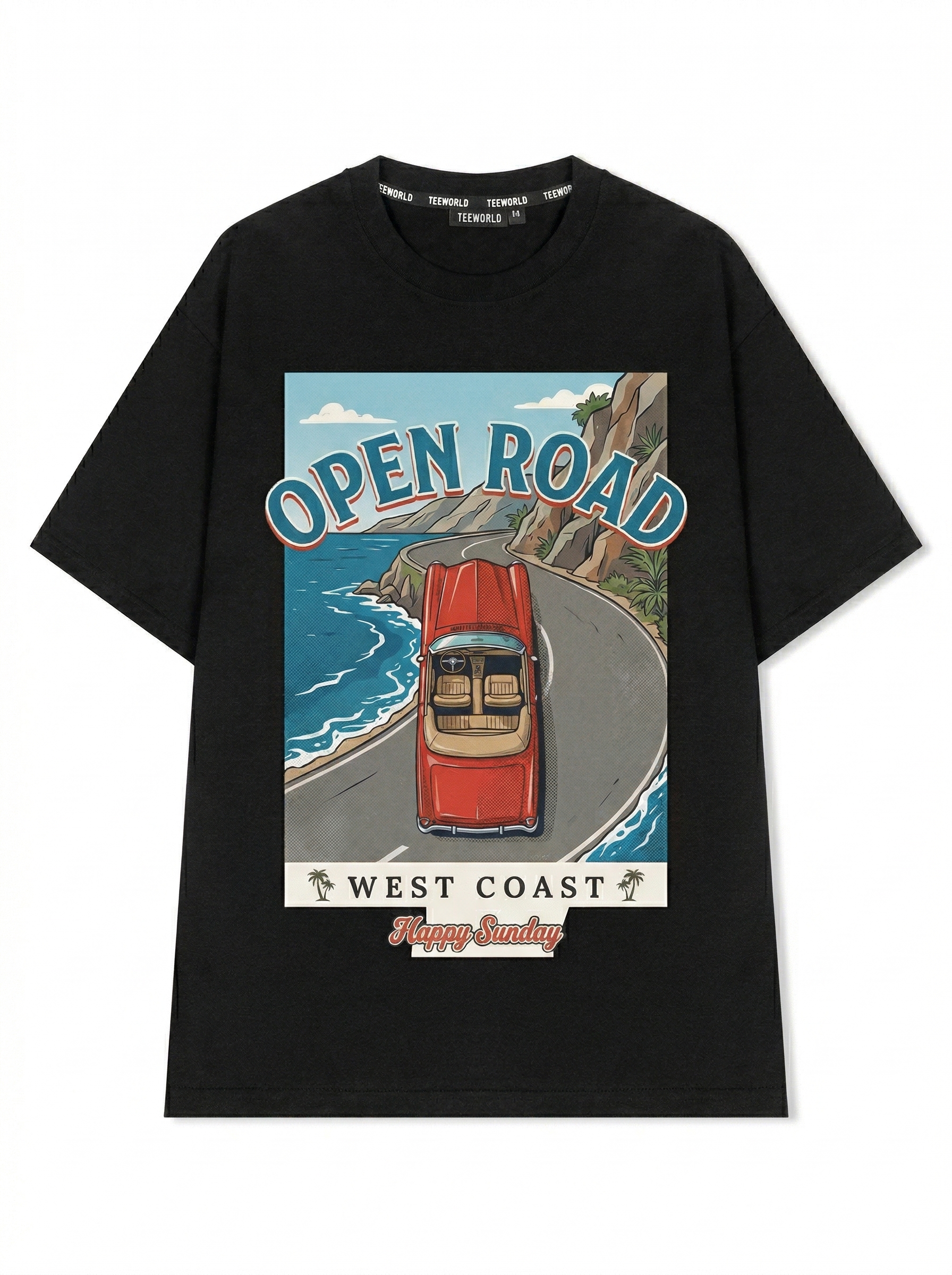 Coastline Drive - Thiết kế độc quyền từ Happy Sunday. Chất liệu: Cotton Premium 250gsm, form oversize thoải mái. In ấn: Công nghệ in sắc nét, bền màu sau nhiều lần giặt. Phong cách: Đồ họa nghệ thuật, nổi bật.