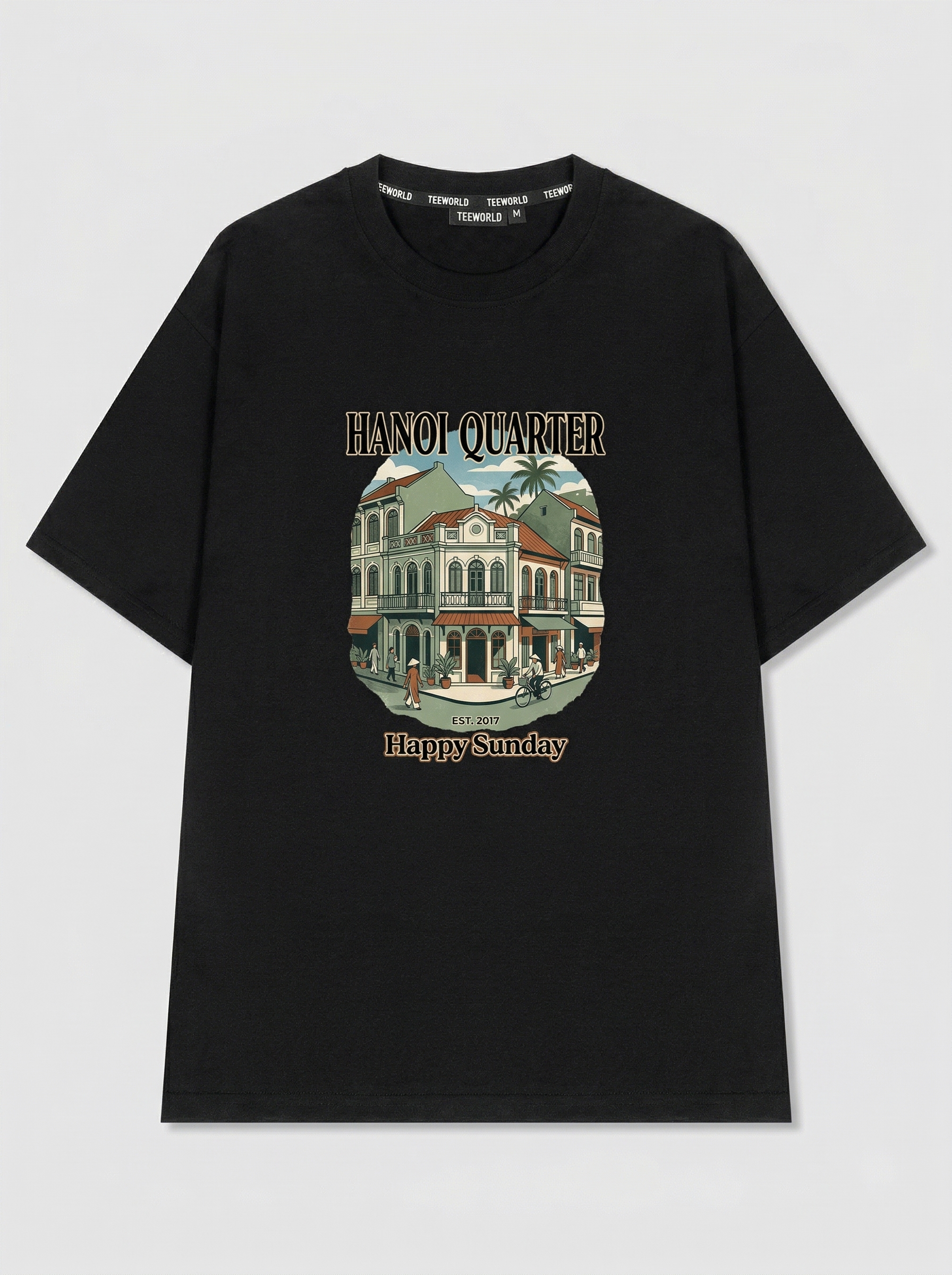 Corner Street - Thiết kế độc quyền từ Happy Sunday. Chất liệu: Cotton Premium 250gsm, form oversize thoải mái. In ấn: Công nghệ in sắc nét, bền màu sau nhiều lần giặt. Phong cách: Đồ họa nghệ thuật, nổi bật.