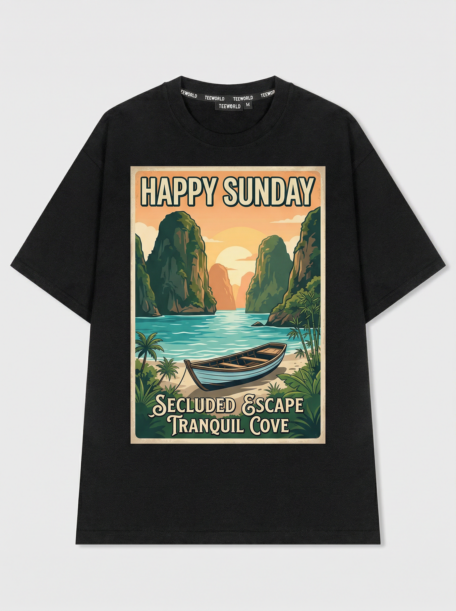 Cove of Resilience - Thiết kế độc quyền từ Happy Sunday. Chất liệu: Cotton Premium 250gsm, form oversize thoải mái. In ấn: Công nghệ in sắc nét, bền màu sau nhiều lần giặt. Phong cách: Đồ họa nghệ thuật, nổi bật.