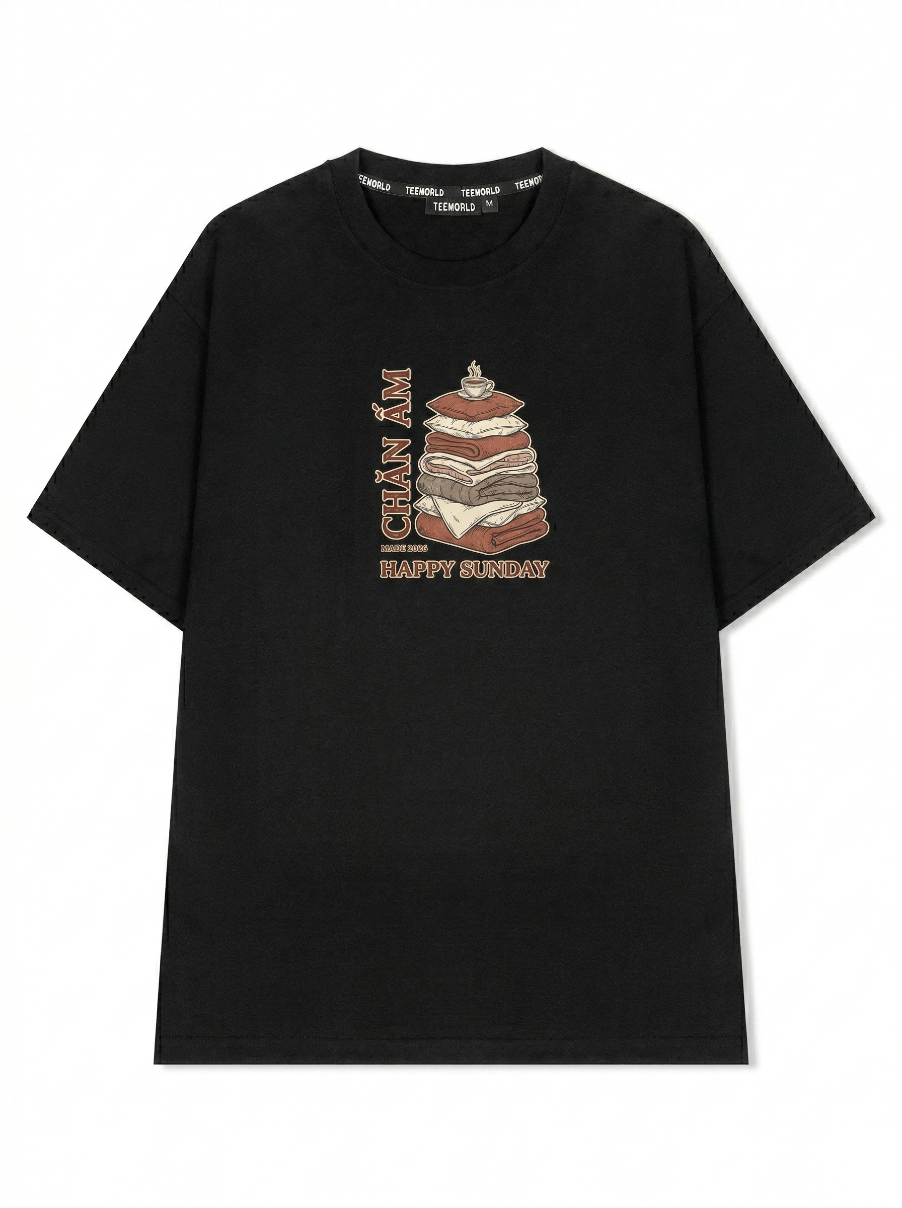 Cozy Corner - Thiết kế độc quyền từ Happy Sunday. Chất liệu: Cotton Premium 250gsm, form oversize thoải mái. In ấn: Công nghệ in sắc nét, bền màu sau nhiều lần giặt. Phong cách: Streetwear hiện đại, dễ phối đồ.