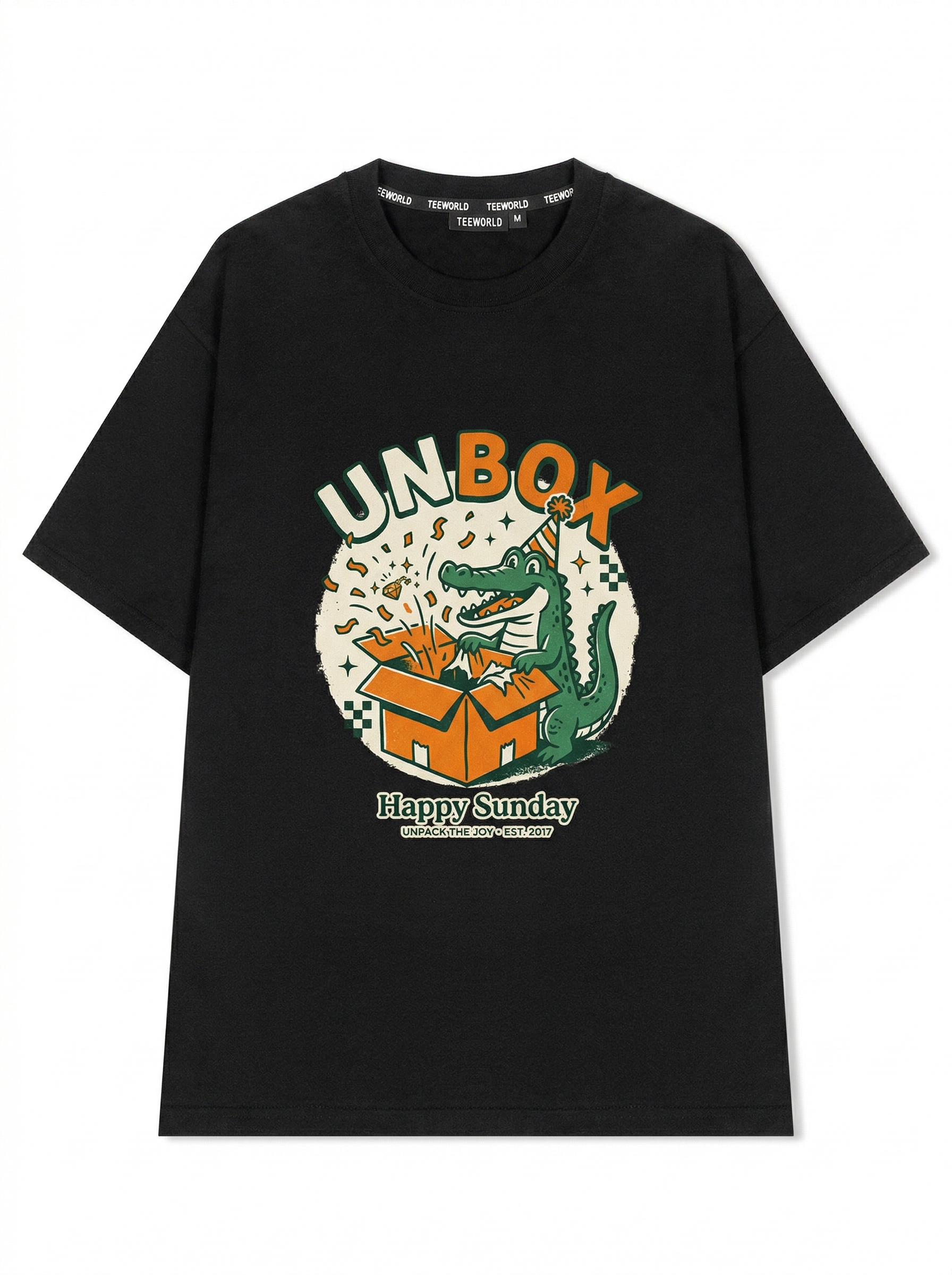 Croc Unbox - Thiết kế độc quyền từ Happy Sunday. Chất liệu: Cotton Premium 250gsm, form oversize thoải mái. In ấn: Công nghệ in sắc nét, bền màu sau nhiều lần giặt. Phong cách: Streetwear hiện đại, dễ phối đồ.