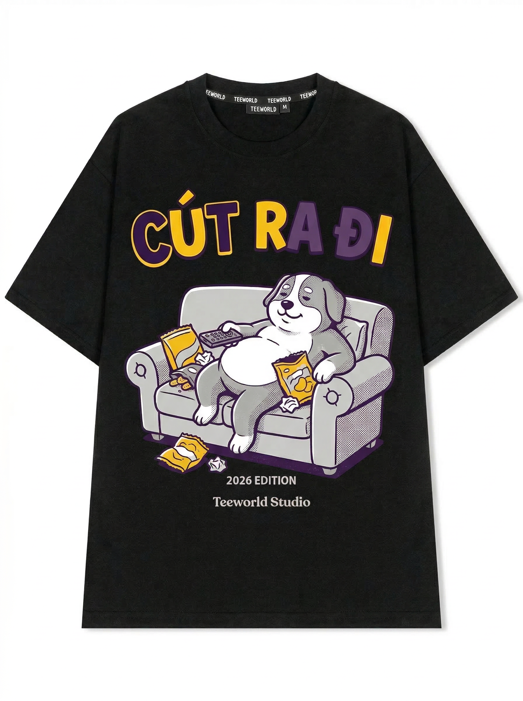 Cún Lười Biếng - Thiết kế độc quyền từ Teeworld. Chất liệu: Cotton Premium 250gsm, form oversize thoải mái. In ấn: Công nghệ in sắc nét, bền màu sau nhiều lần giặt. Phong cách: Streetwear hiện đại, dễ phối đồ.