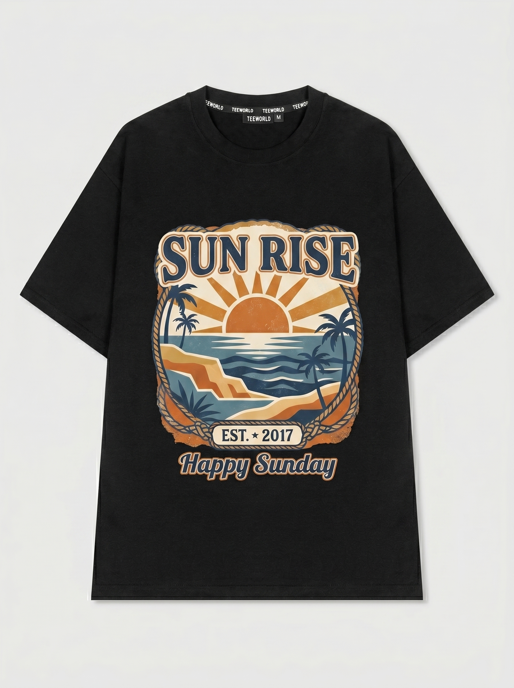 Dawn Shore - Thiết kế độc quyền từ Happy Sunday. Chất liệu: Cotton Premium 250gsm, form oversize thoải mái. In ấn: Công nghệ in sắc nét, bền màu sau nhiều lần giặt. Phong cách: Đồ họa nghệ thuật, nổi bật.
