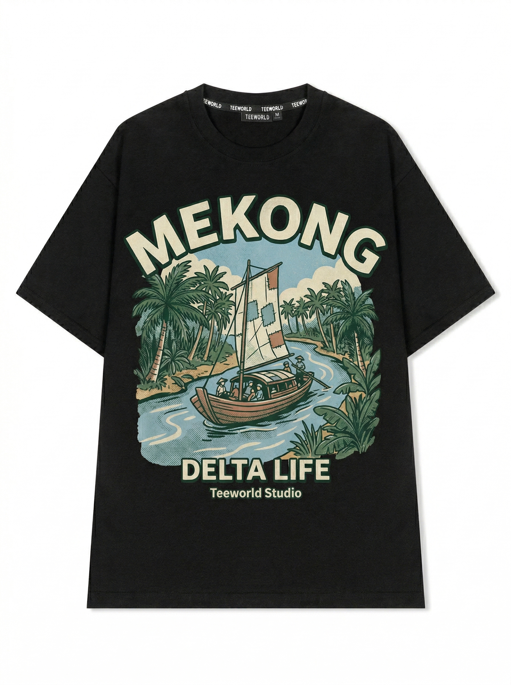 Delta River Life - Thiết kế độc quyền từ Teeworld. Chất liệu: Cotton Premium 250gsm, form oversize thoải mái. In ấn: Công nghệ in sắc nét, bền màu sau nhiều lần giặt. Phong cách: Streetwear hiện đại, dễ phối đồ.