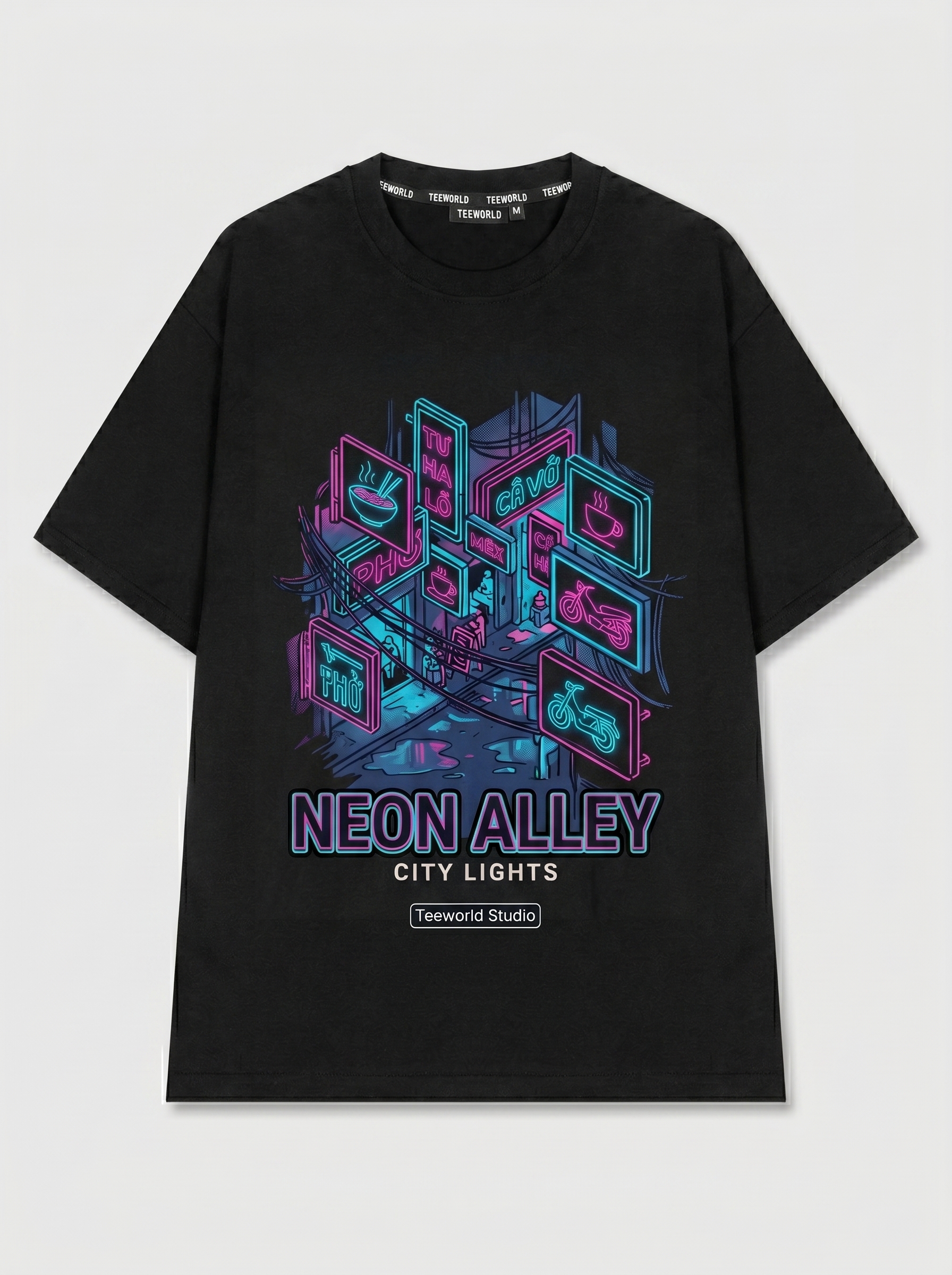 Đèn Hẻm - Thiết kế độc quyền từ Teeworld. Chất liệu: Cotton Premium 250gsm, form oversize thoải mái. In ấn: Công nghệ in sắc nét, bền màu sau nhiều lần giặt. Phong cách: Streetwear hiện đại, dễ phối đồ.