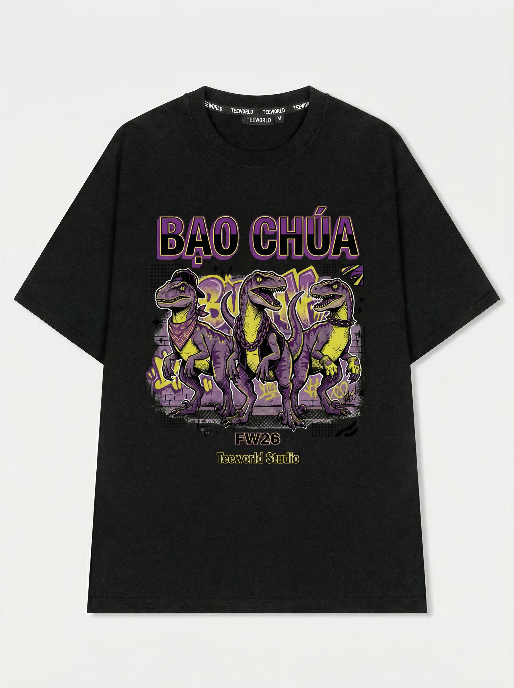 Dino Gang - Thiết kế độc quyền từ Teeworld. Chất liệu: Cotton Premium 250gsm, form oversize thoải mái. In ấn: Công nghệ in sắc nét, bền màu sau nhiều lần giặt. Phong cách: Streetwear hiện đại, dễ phối đồ.