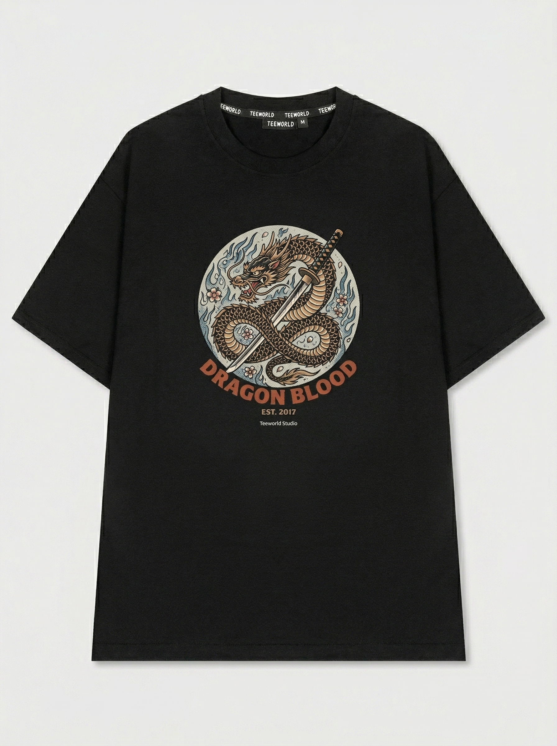 Dragon Blade - Thiết kế độc quyền từ Teeworld. Chất liệu: Cotton Premium 250gsm, form oversize thoải mái. In ấn: Công nghệ in sắc nét, bền màu sau nhiều lần giặt. Phong cách: Streetwear hiện đại, dễ phối đồ.