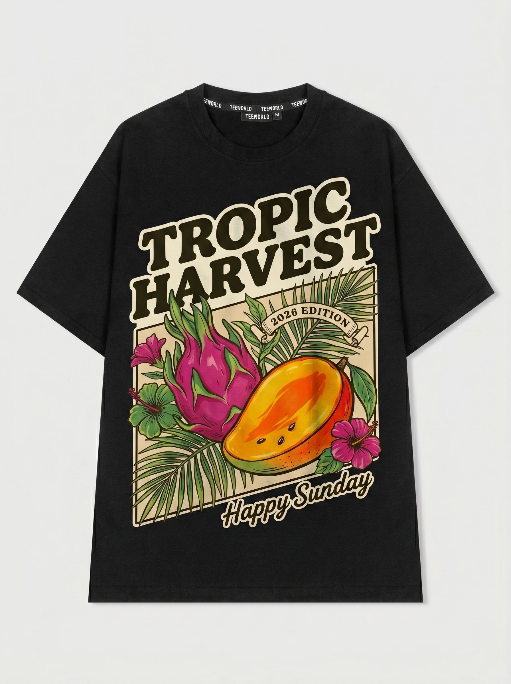 Dragon Mango - Thiết kế độc quyền từ Happy Sunday. Chất liệu: Cotton Premium 250gsm, form oversize thoải mái. In ấn: Công nghệ in sắc nét, bền màu sau nhiều lần giặt. Phong cách: Đồ họa nghệ thuật, nổi bật.