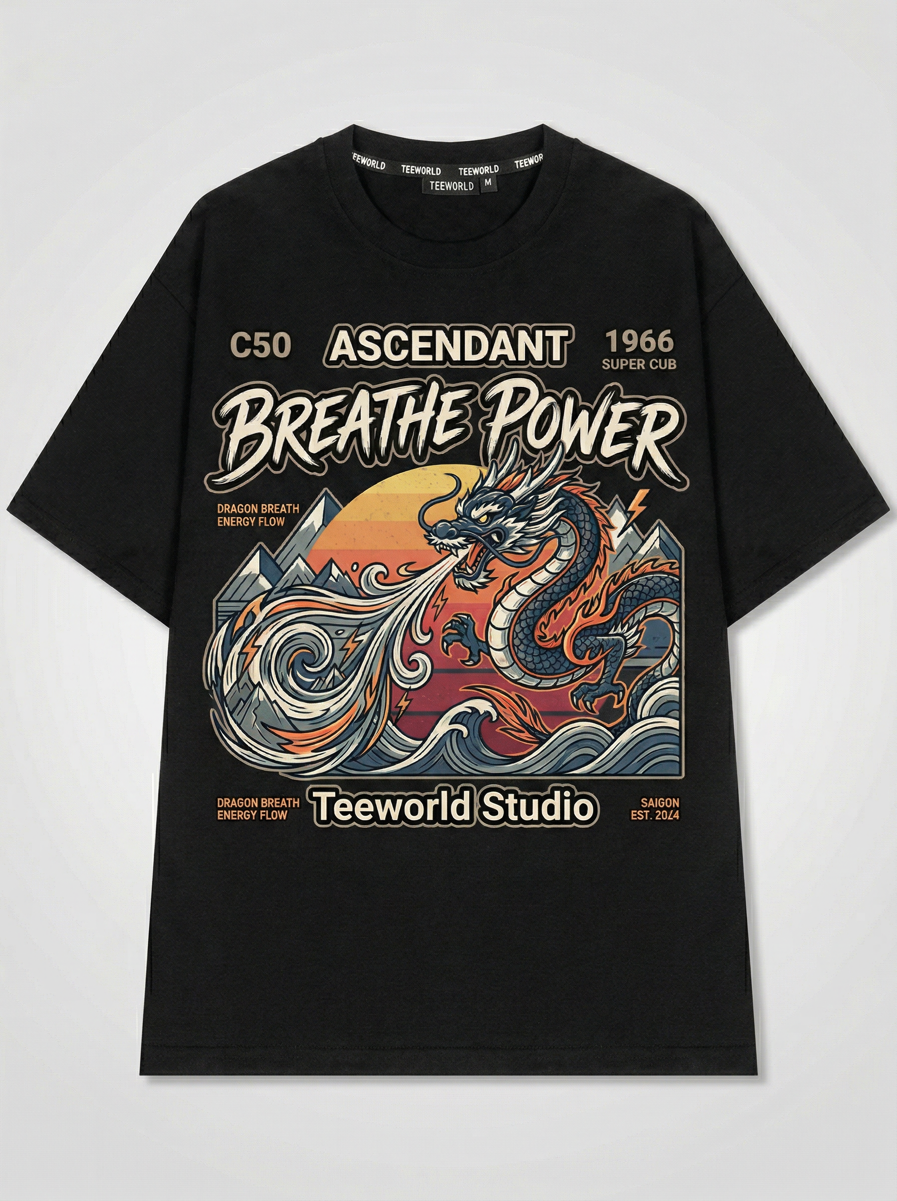 Dragon's Spirit Flow - Thiết kế độc quyền từ Teeworld. Chất liệu: Cotton Premium 250gsm, form oversize thoải mái. In ấn: Công nghệ in sắc nét, bền màu sau nhiều lần giặt. Phong cách: Streetwear hiện đại, dễ phối đồ.