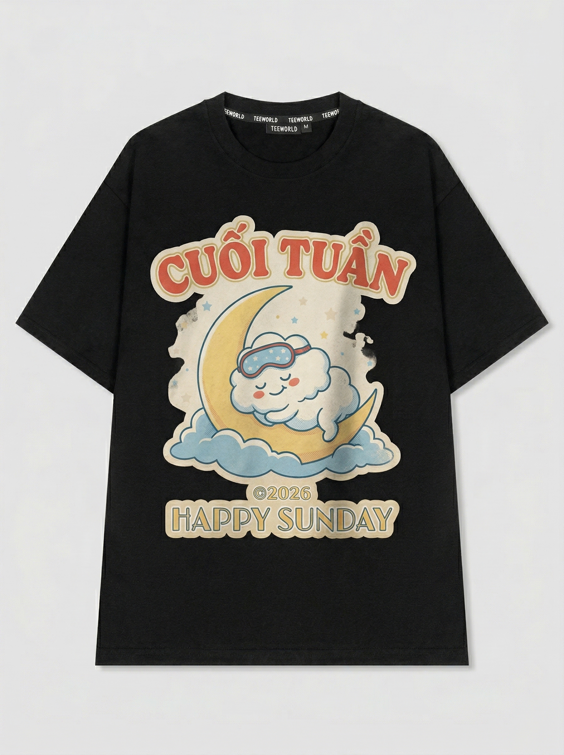 Dreamy Weekend - Thiết kế độc quyền từ Happy Sunday. Chất liệu: Cotton Premium 250gsm, form oversize thoải mái. In ấn: Công nghệ in sắc nét, bền màu sau nhiều lần giặt. Phong cách: Streetwear hiện đại, dễ phối đồ.