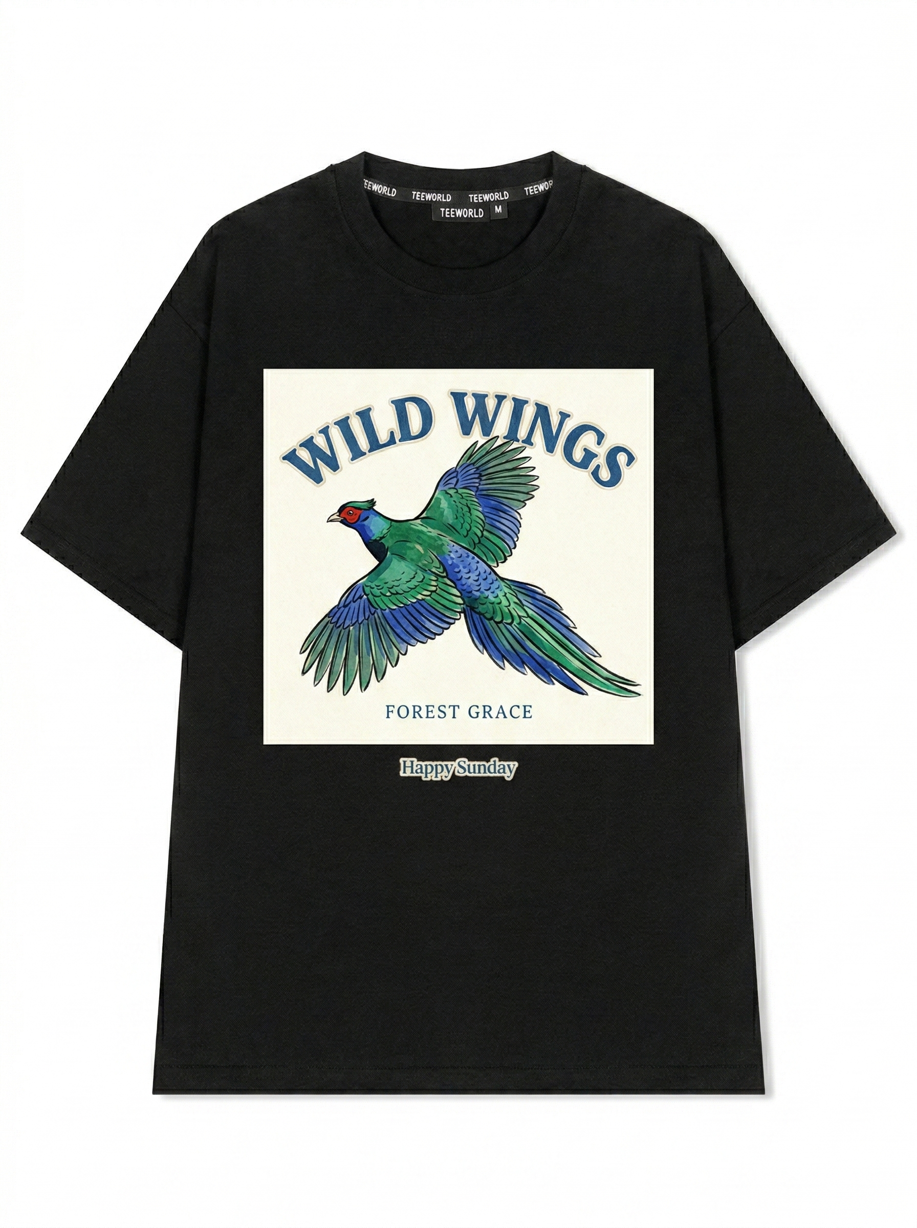 Feathered Flight - Thiết kế độc quyền từ Happy Sunday. Chất liệu: Cotton Premium 250gsm, form oversize thoải mái. In ấn: Công nghệ in sắc nét, bền màu sau nhiều lần giặt. Phong cách: Đồ họa nghệ thuật, nổi bật.