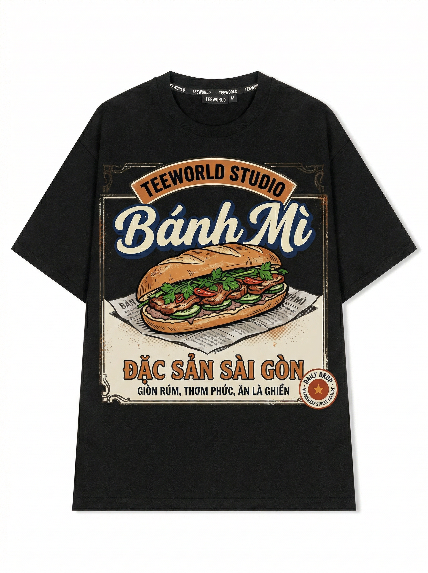 Thiết kế độc quyền từ Teeworld. Chất liệu: Cotton Premium 250gsm, form oversize thoải mái. In ấn: Công nghệ in sắc nét, bền màu sau nhiều lần giặt. Phong cách: Streetwear hiện đại, dễ phối đồ.