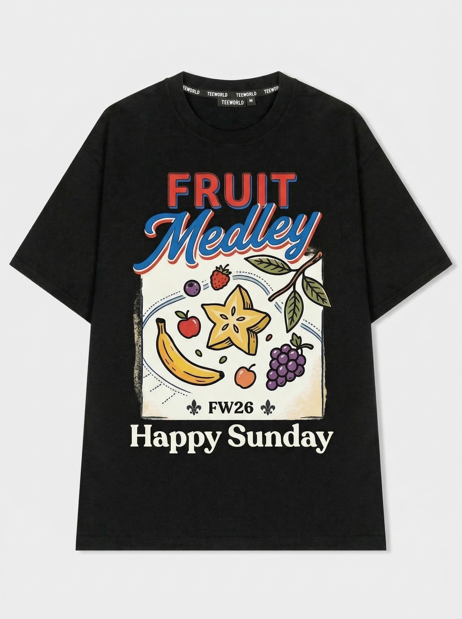Fruit Medley Mix - Thiết kế độc quyền từ Happy Sunday. Chất liệu: Cotton Premium 250gsm, form oversize thoải mái. In ấn: Công nghệ in sắc nét, bền màu sau nhiều lần giặt. Phong cách: Đồ họa nghệ thuật, nổi bật.