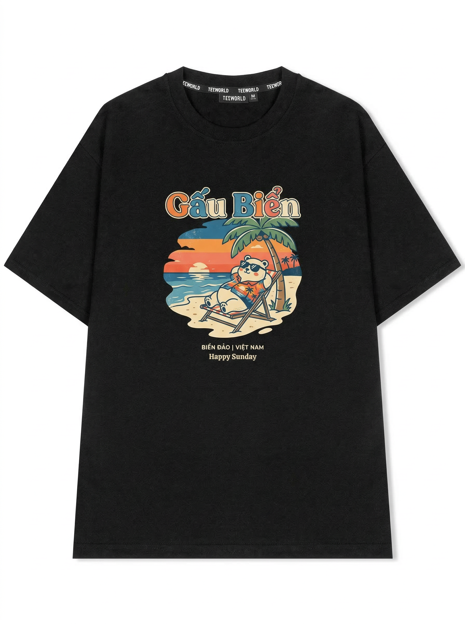 Gấu Mê Biển - Thiết kế độc quyền từ Happy Sunday. Chất liệu: Cotton Premium 250gsm, form oversize thoải mái. In ấn: Công nghệ in sắc nét, bền màu sau nhiều lần giặt. Phong cách: Streetwear hiện đại, dễ phối đồ.