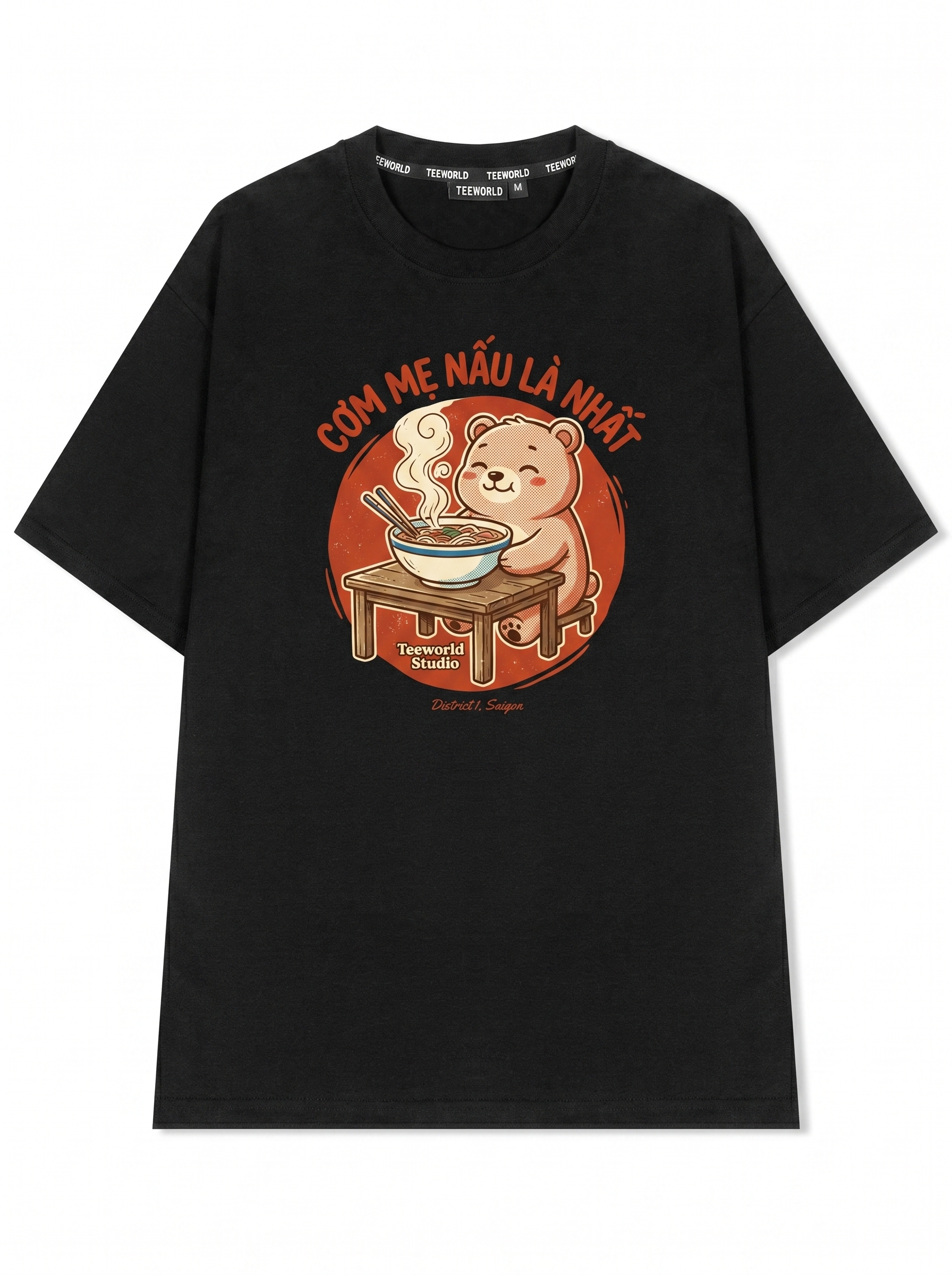 Gấu Thích Phở - Thiết kế độc quyền từ Teeworld. Chất liệu: Cotton Premium 250gsm, form oversize thoải mái. In ấn: Công nghệ in sắc nét, bền màu sau nhiều lần giặt. Phong cách: Streetwear hiện đại, dễ phối đồ.